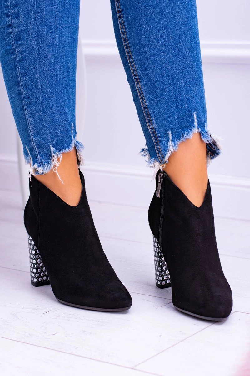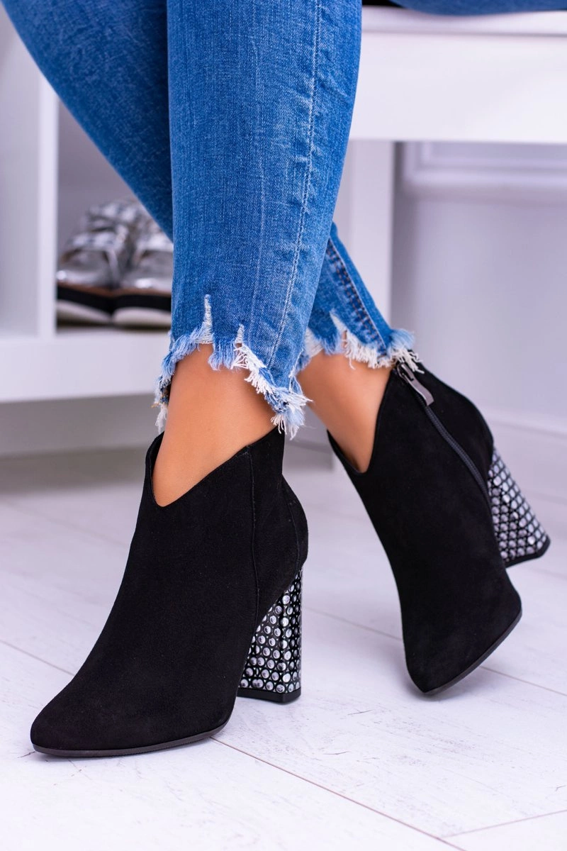 Niezwykle modne botki w tym sezonie! Wyjątkowy styl i eleganckie wykonanie sprawią że są jednym z najbardziej rozchwytywanych modeli tego sezonu! Wierzch wykonany z zamszu, a wkładka ocieplana kocem obuwniczym. Zastosowanie delikatnej wyściółki oraz stabilnego słupka podniesie uczucie komfortu. Klasyczny design i zawsze modny kolor - to coś co musisz mieć! Nie czekaj dłużej i kup teraz w doskonałej cenie!