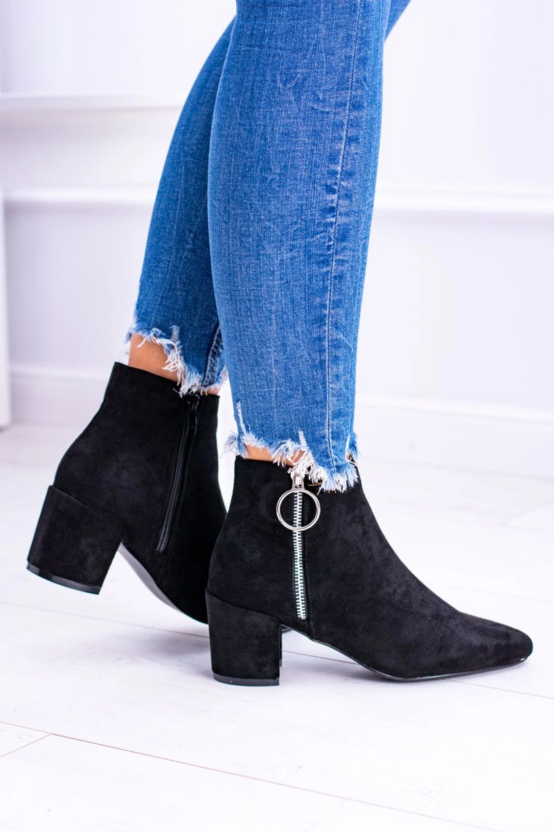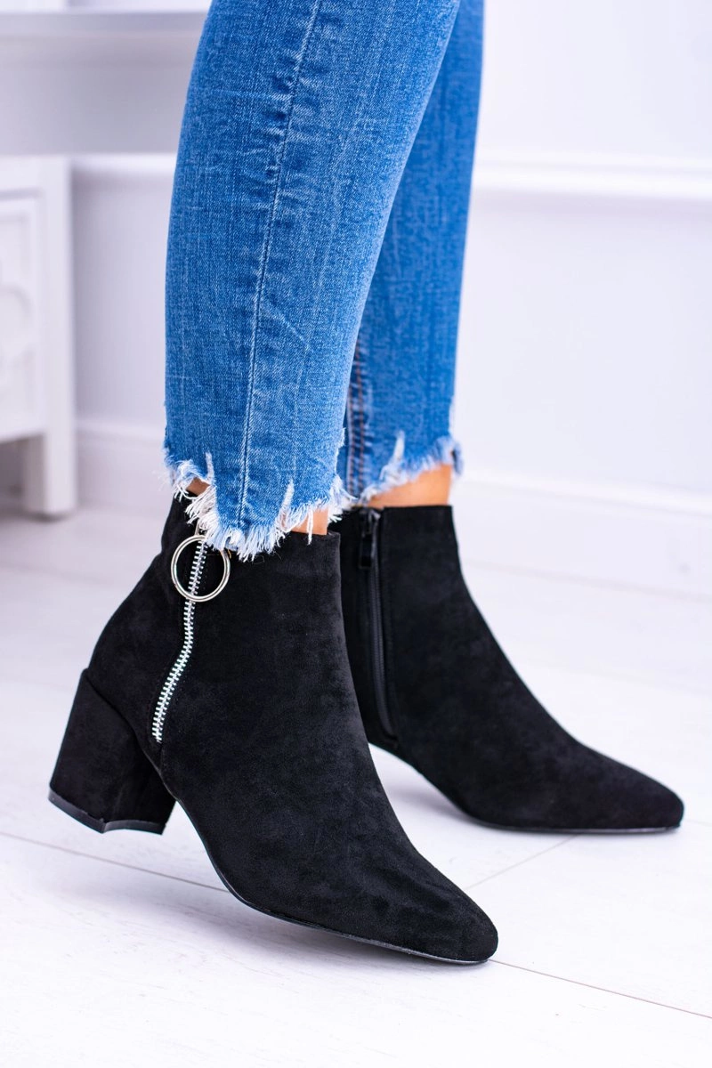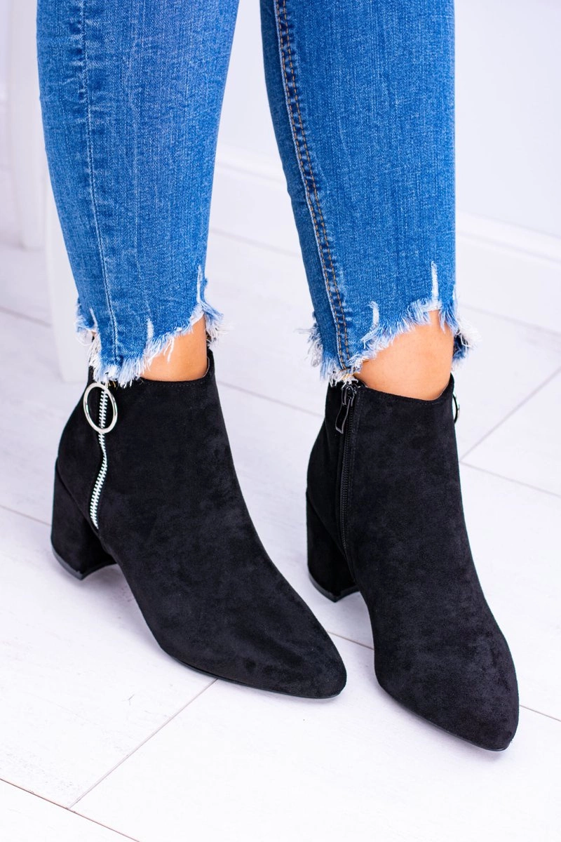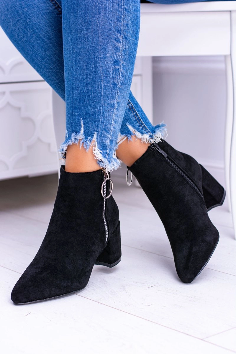 Czarne Zamszowe Botki Na Słupku w Szpic Jonnes