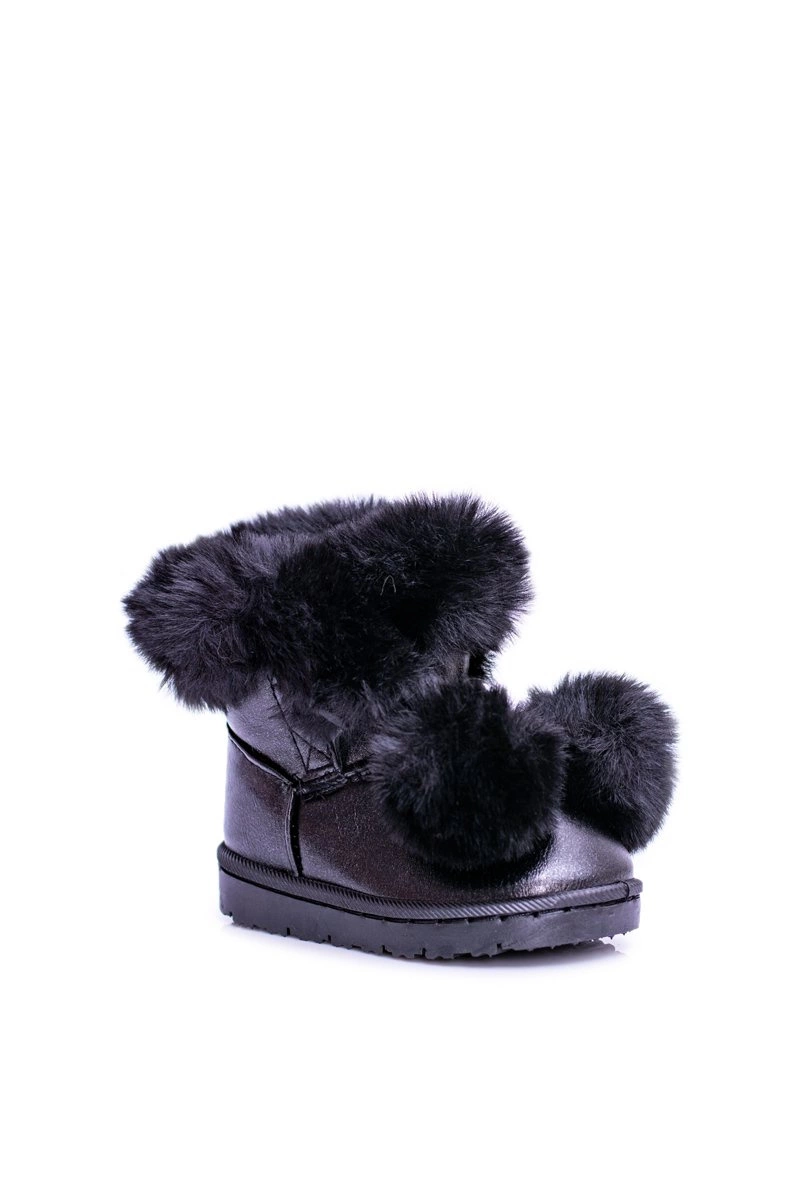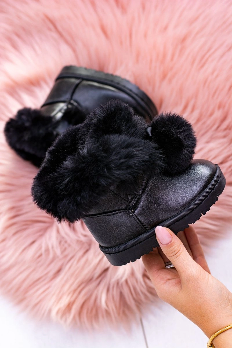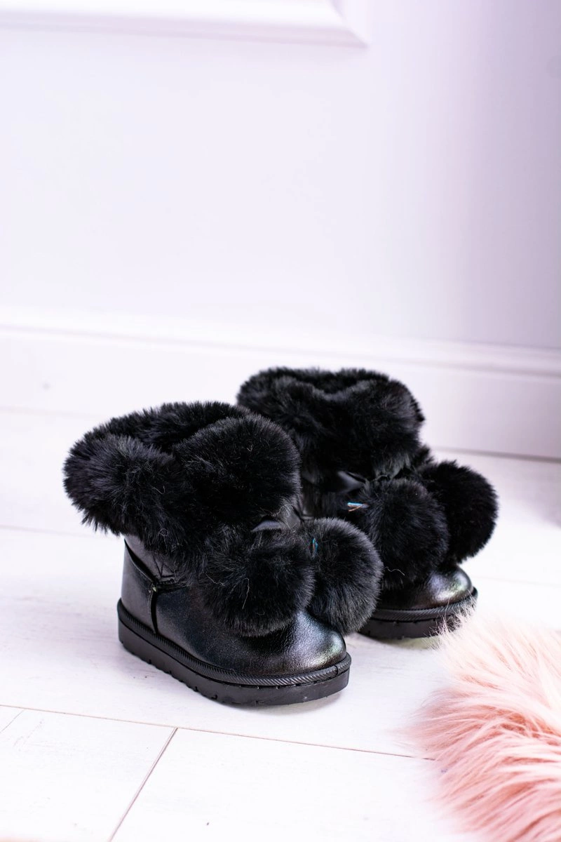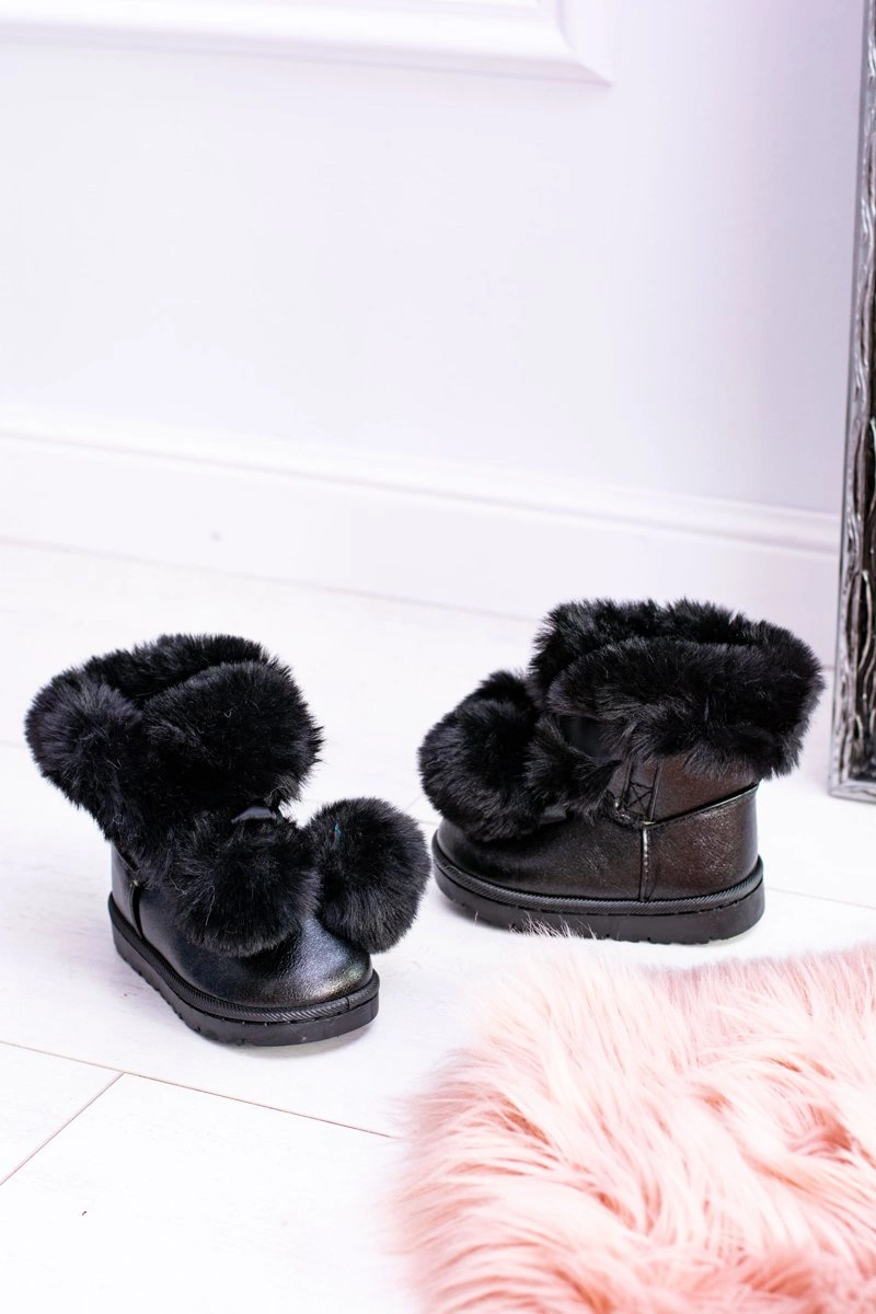 Czarne Ocieplane Dziecięce Młodzieżowe Botki Śniegowce Roofy