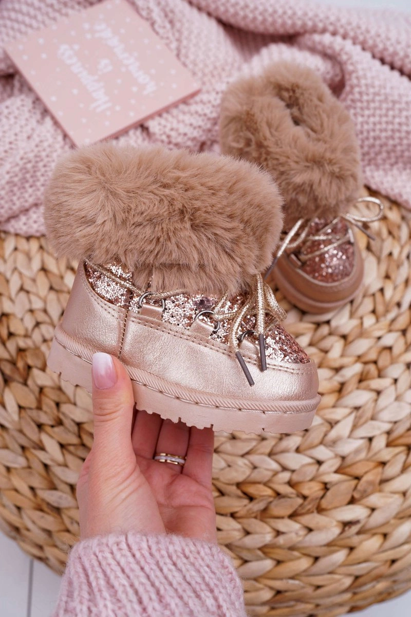 Dziecięce Ocieplane Botki Śniegowce Z Futerkiem Złote Nicola