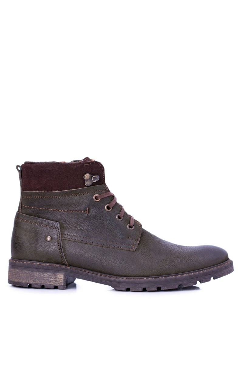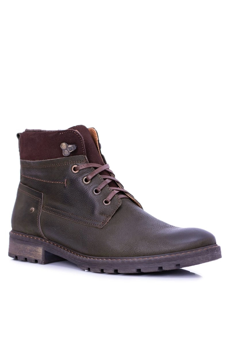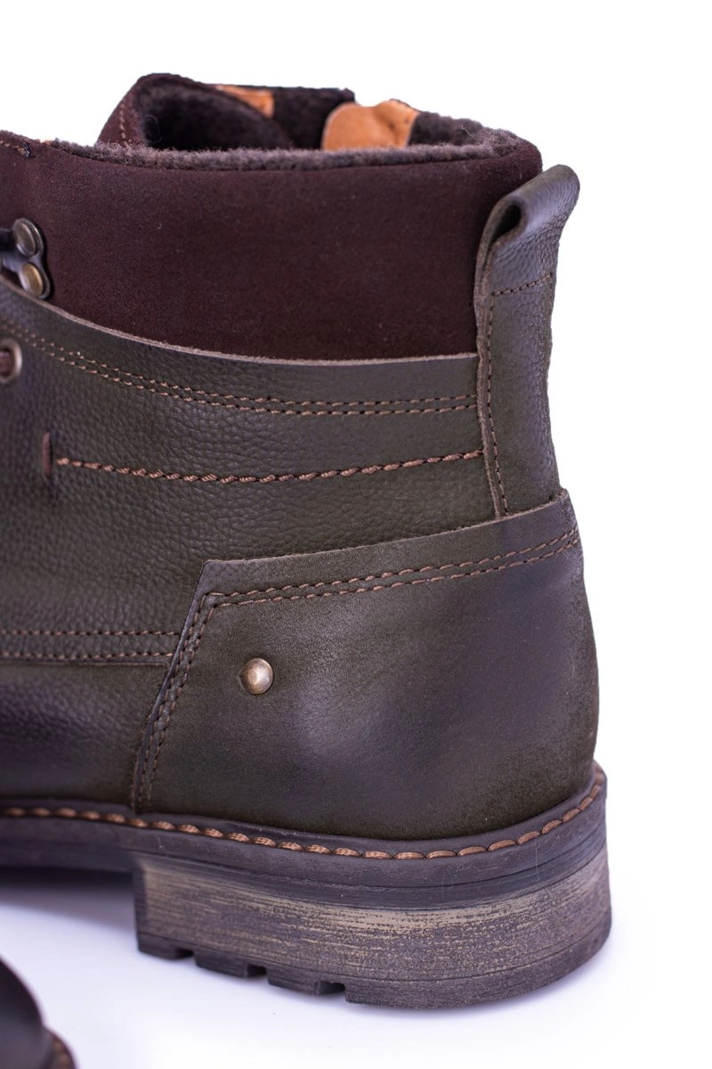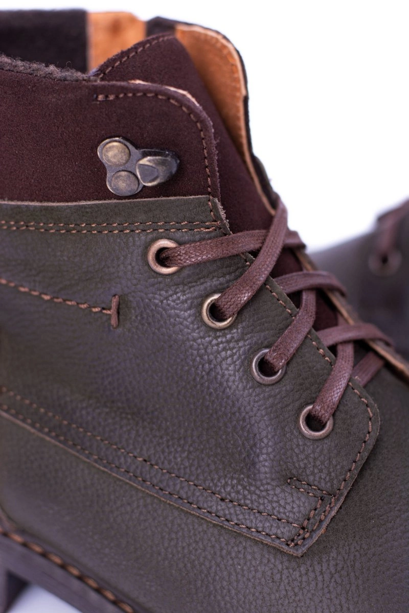 Neex Oliwkowe Skórzane Ocieplane Męskie Botki Kobe