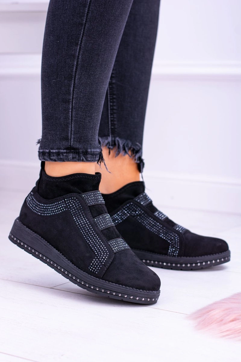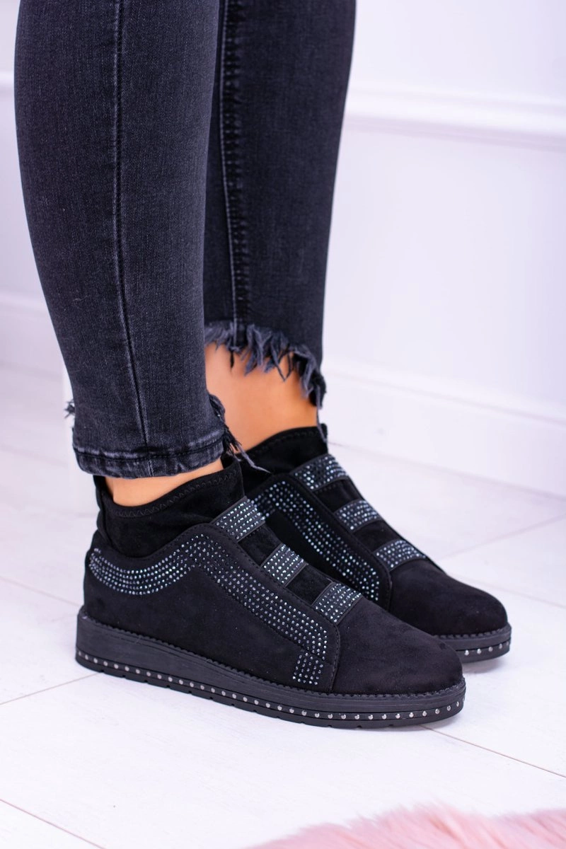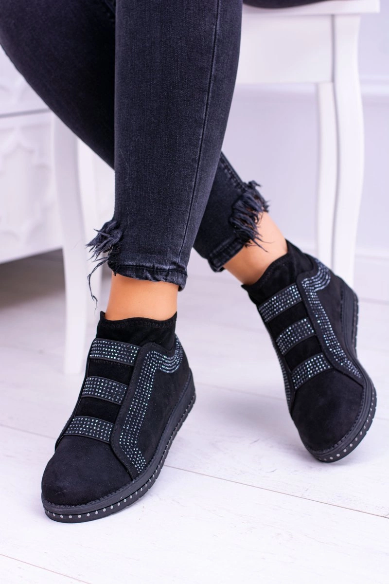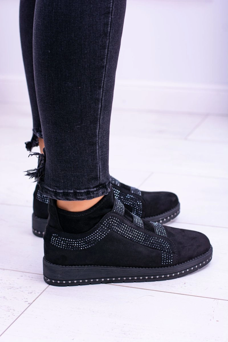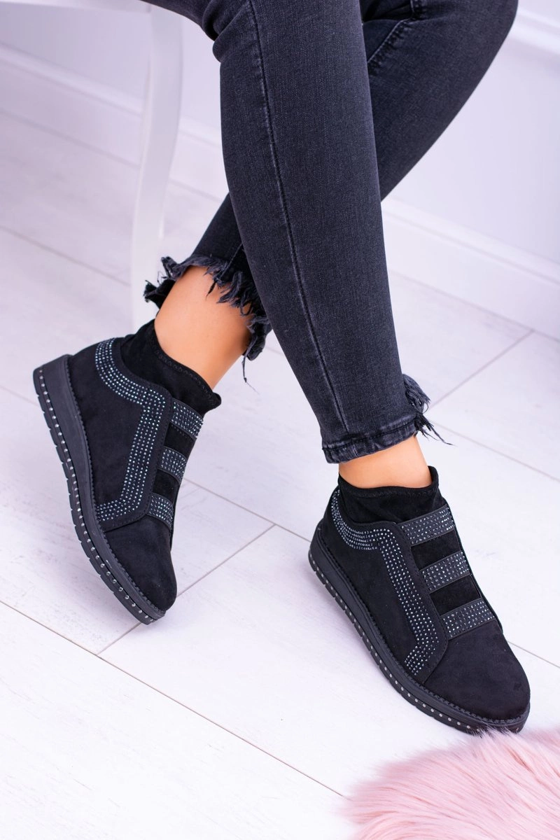 Zamszowe Czarne Damskie Obuwie Sportowe z Cyrkoniami Petite