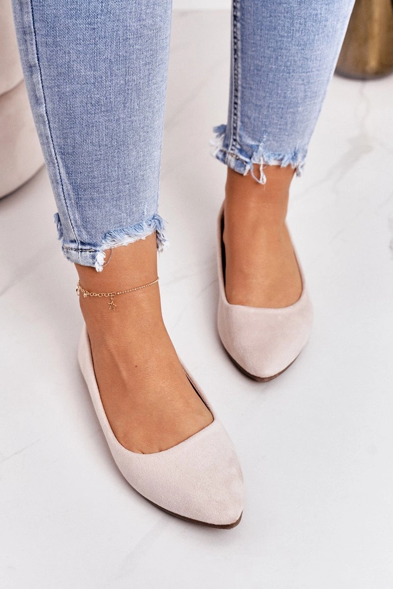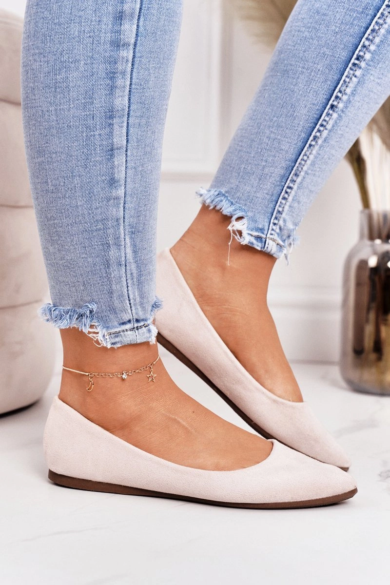 Delikatne Baleriny W Szpic Zamszowe Beżowe Dermeno