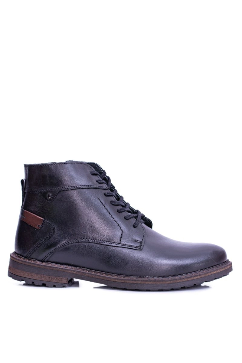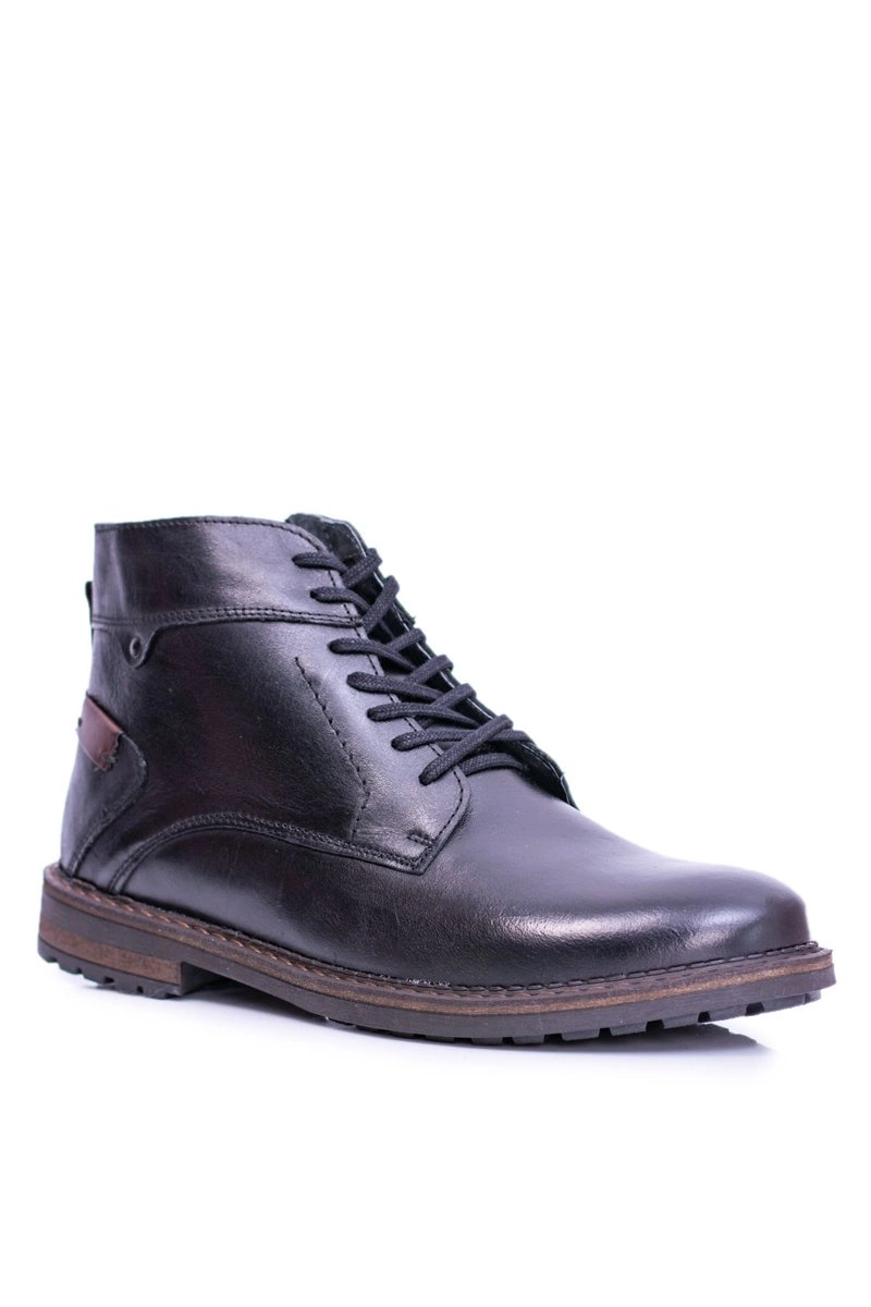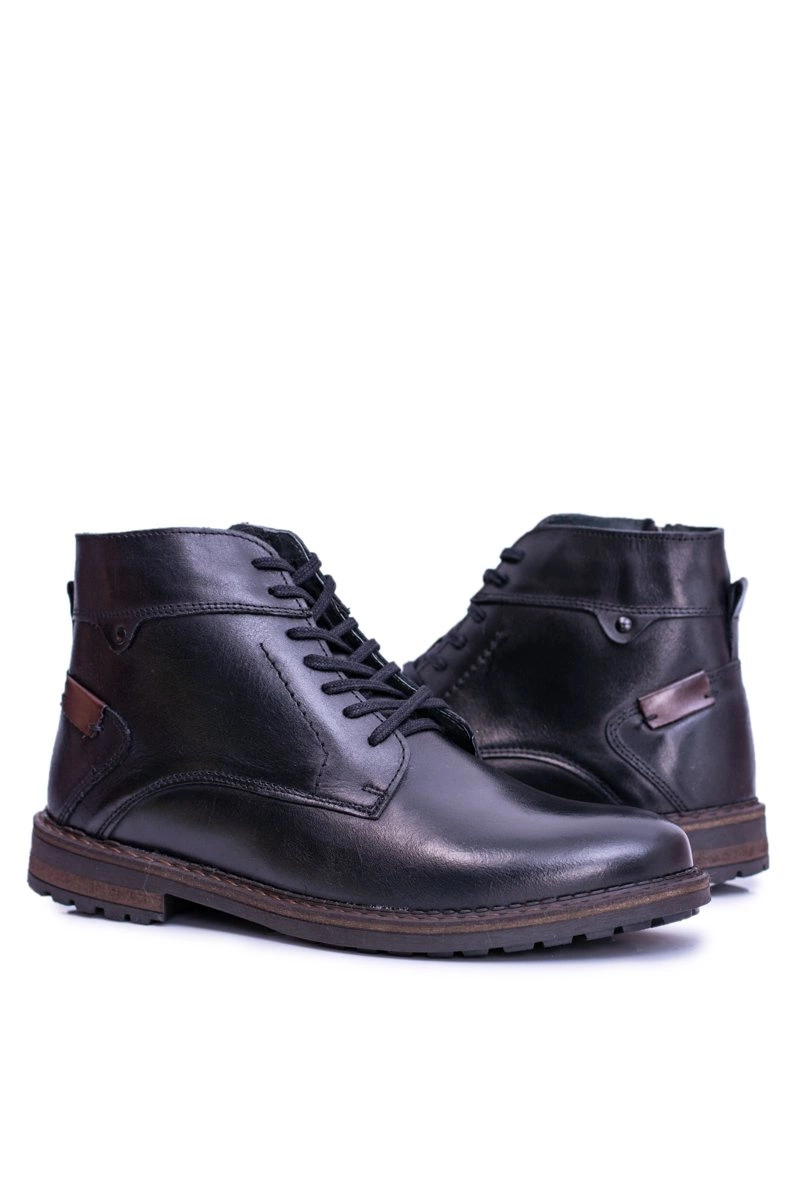 Czarne Botki Męskie Skórzane Ocieplane Trzewiki Devenor