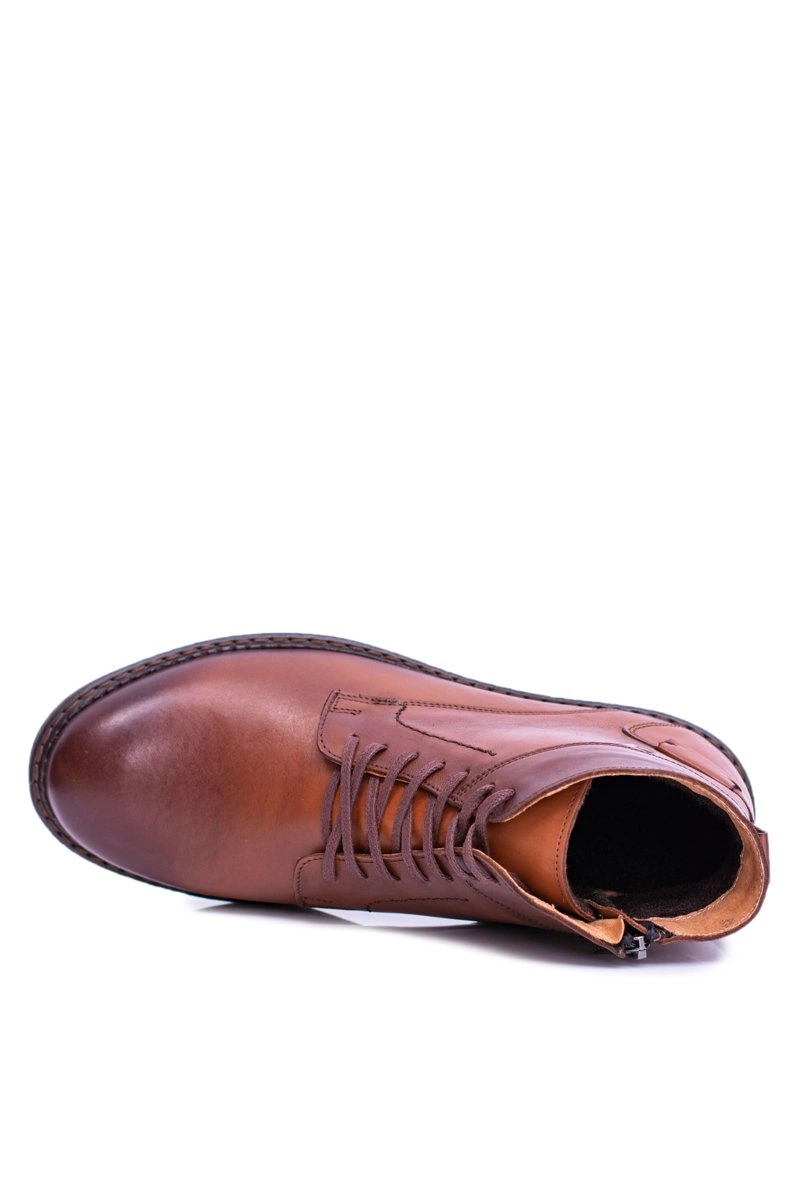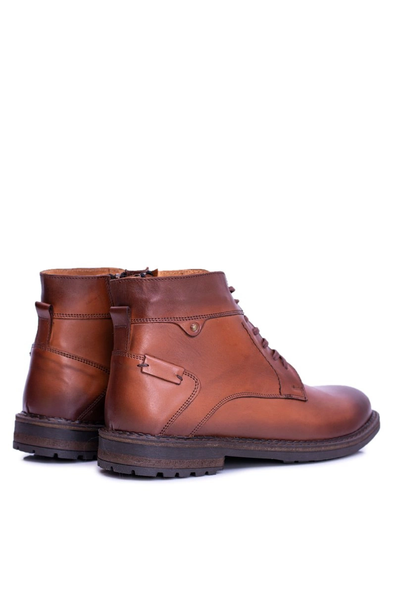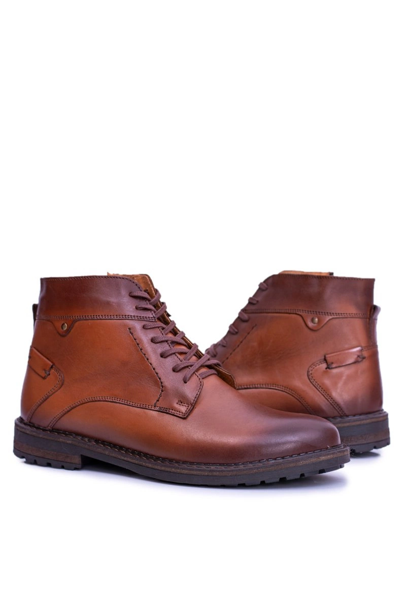 Brązowe Botki Męskie Skórzane Ocieplane Trzewiki Devenor