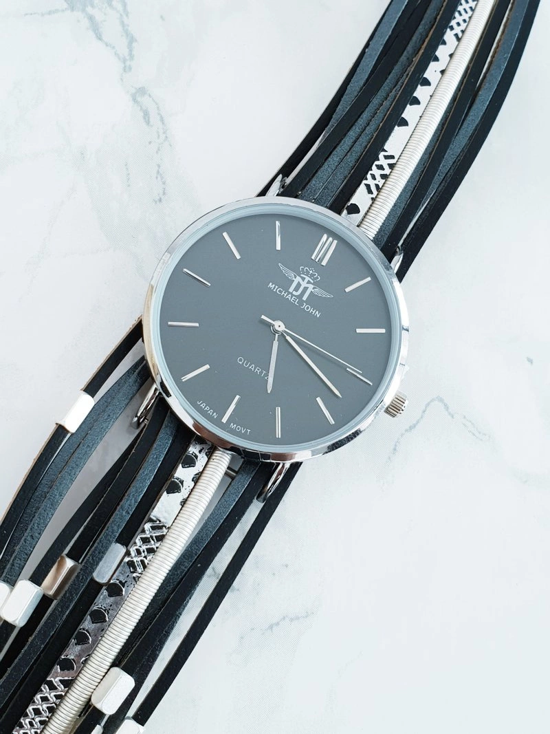 Damski Zegarek Michael John Z Rzemykowym Paskiem Pepero Czarny