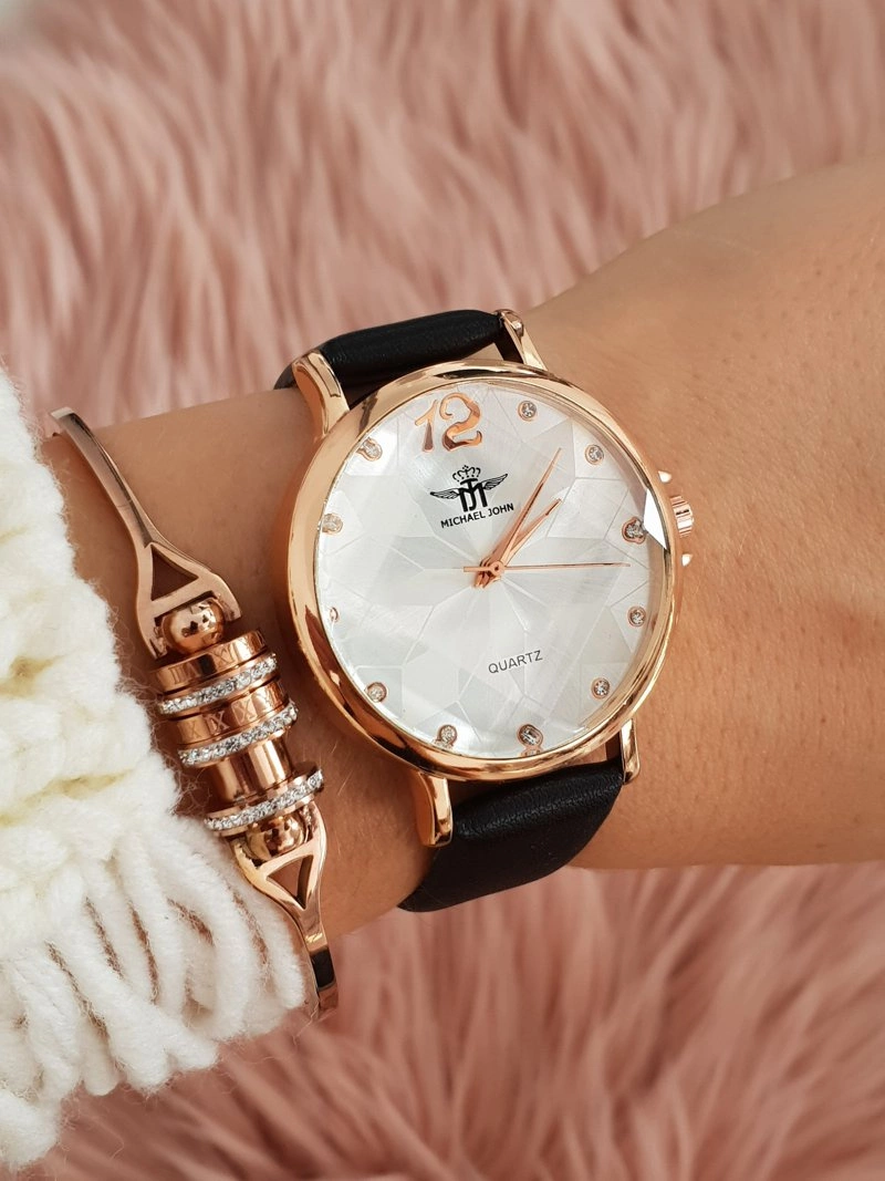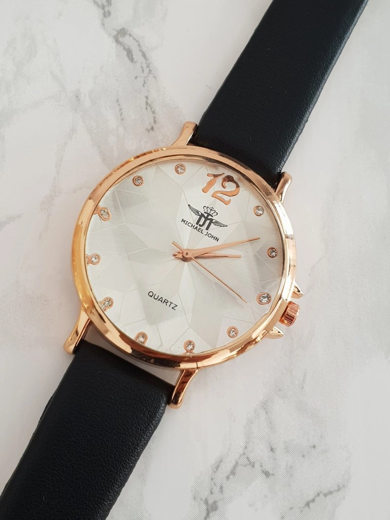 Damski zegarek marki Michael John! Najnowszy model z piękną, szykowną kopertą oraz regulowanym paskiem, to idealny wybór dla eleganckich kobiet! Pasuje zarówno do codziennych stylizacji jak i tych bardziej eleganckich. Duża tarcza przyozdobiona geometrycznym wzorem. Nie czekaj dłużej, spraw sobie trochę elegancji w najwyższej jakości.