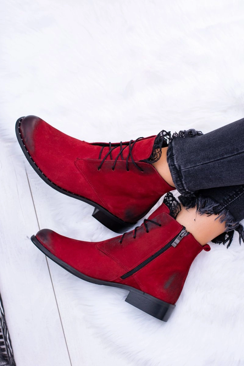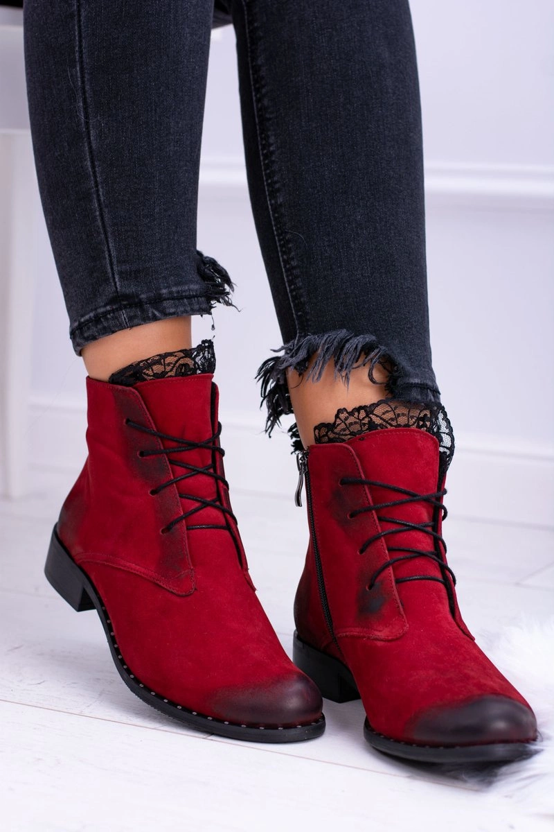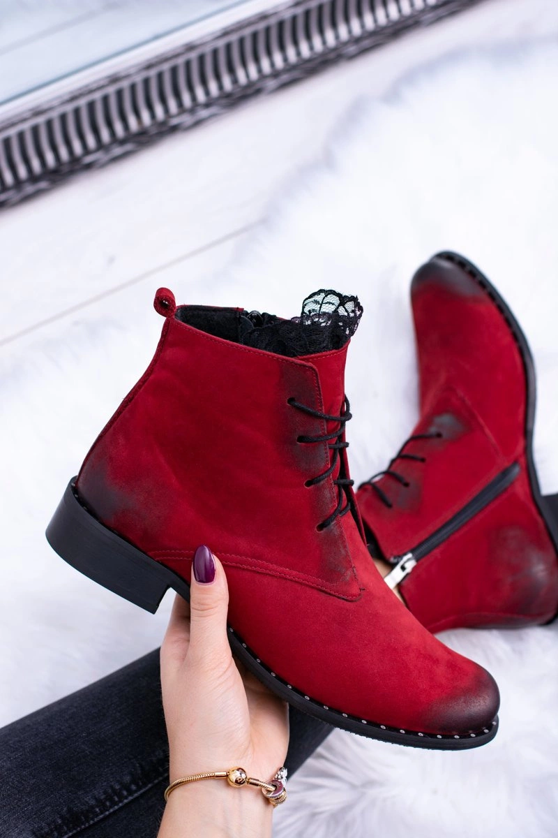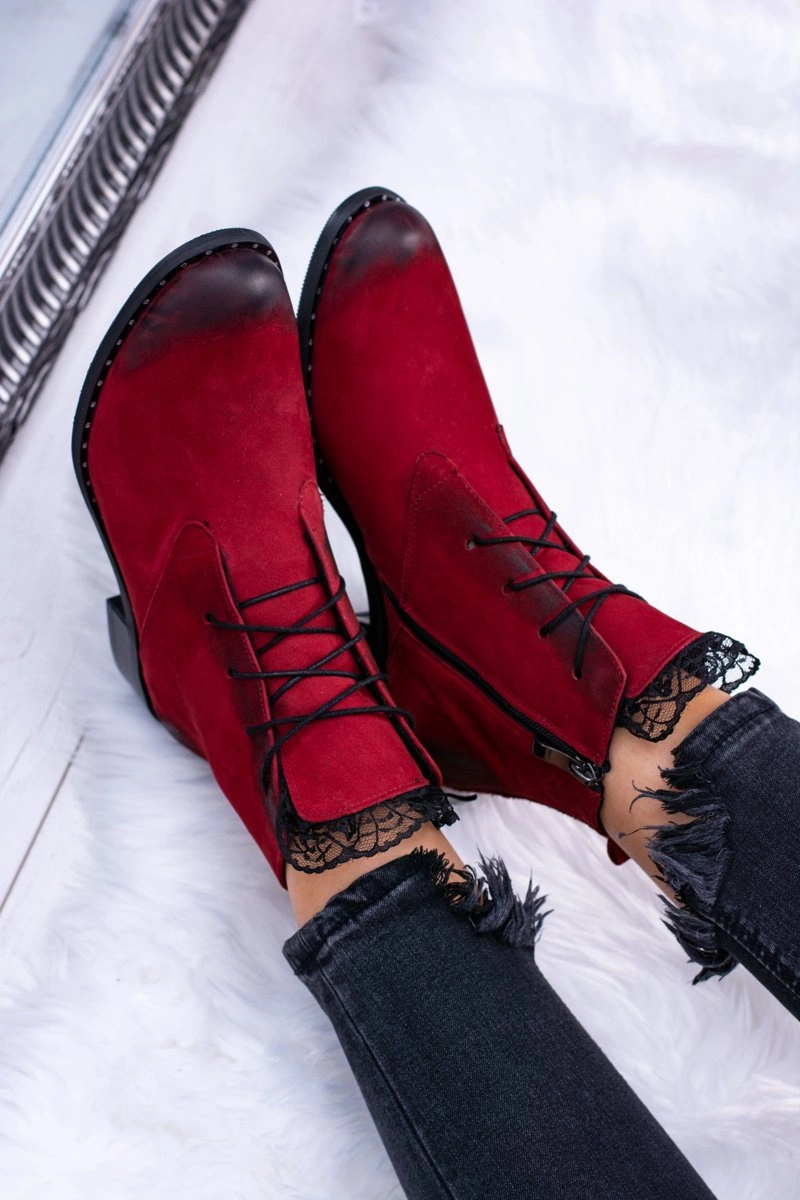 Skórzane Czerwone Damskie Botki Z Koronką Millano