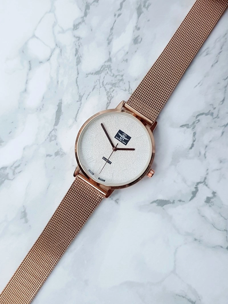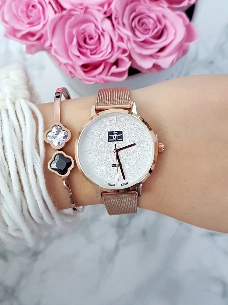 Damski Zegarek Michael John Elis Różowe Złoto / Biała Tarcza