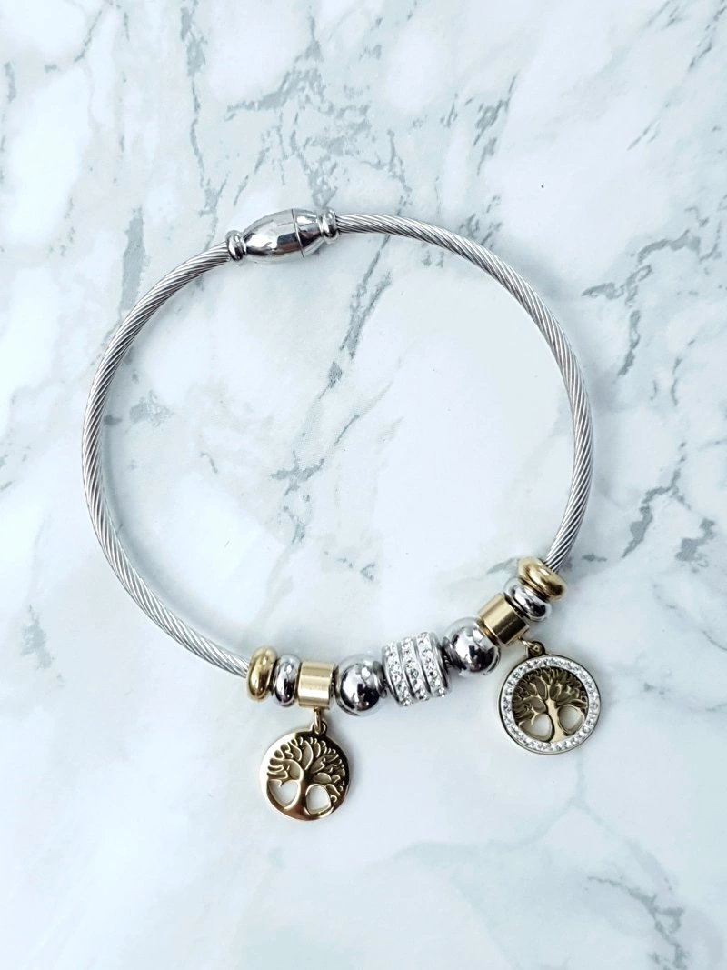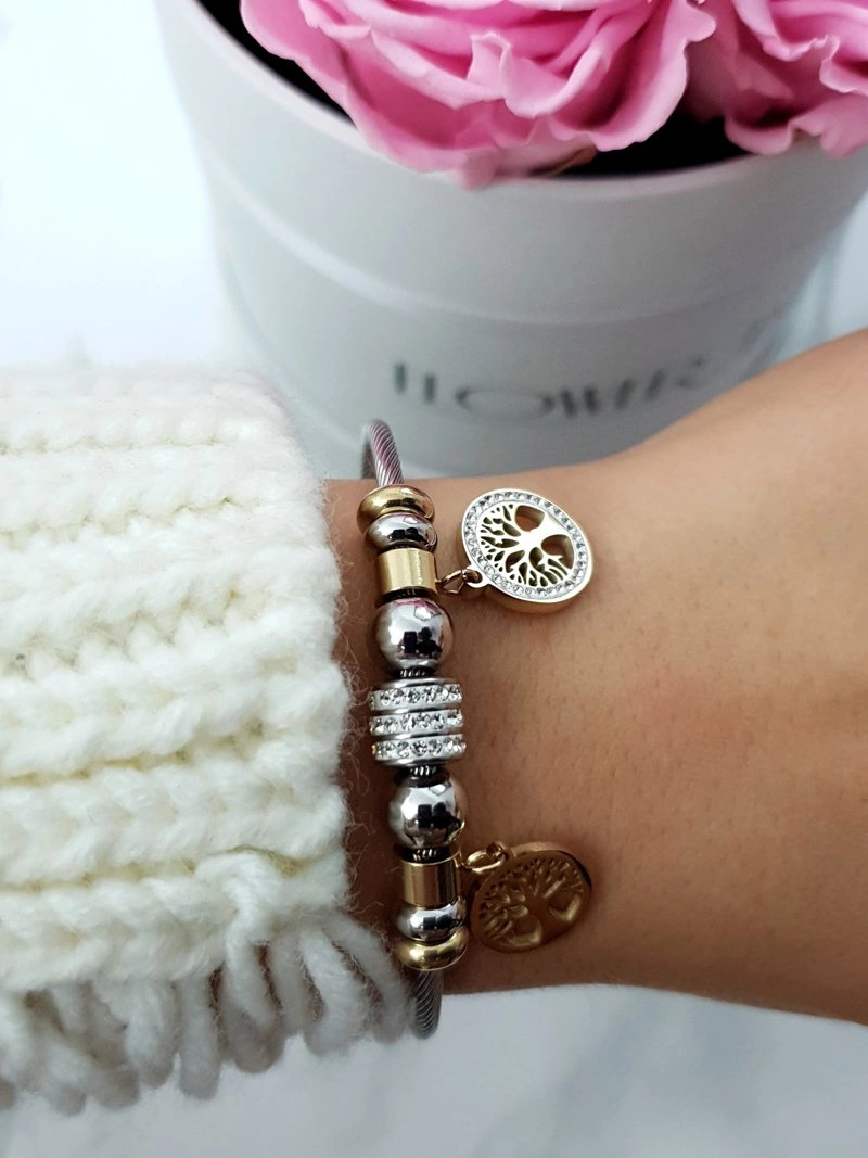 My kobiety kochamy błyskotki. Każda stylizacja potrzebuje dodatków, a nawet te najmniejsze są bardzo ważne. Mowa tu o pięknej biżuterii, która podkreśli to co najlepsze. Delikatna bransoletka ze stalowej linki z pięknie mieniącymi się zawieszkami w różnych kształtach oraz wzorach. Bransoletka posiada zapinanie na magnes, które ułatwi jej zakładanie. Sprawdź całą naszą kolekcję biżuterii i wybierz swój ulubiony dodatek.