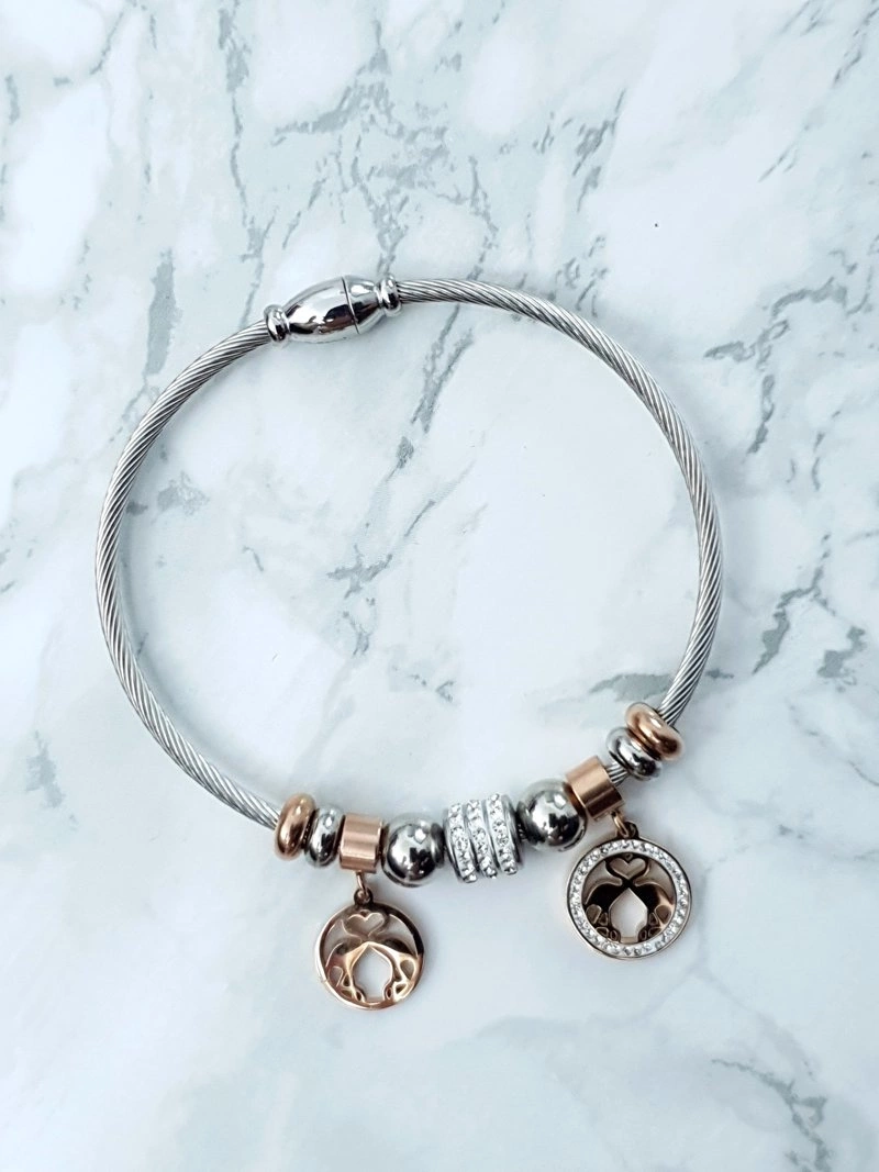 My kobiety kochamy błyskotki. Każda stylizacja potrzebuje dodatków, a nawet te najmniejsze są bardzo ważne. Mowa tu o pięknej biżuterii, która podkreśli to co najlepsze. Delikatna bransoletka ze stalowej linki z pięknie mieniącymi się zawieszkami w różnych kształtach oraz wzorach. Bransoletka posiada zapinanie na magnes, które ułatwi jej zakładanie. Sprawdź całą naszą kolekcję biżuterii i wybierz swój ulubiony dodatek.