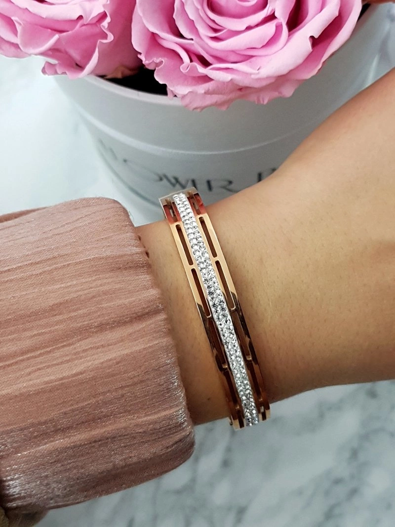 Damska Bransoleta Stalowa Z Cyrkoniami Różowe Złoto Verne