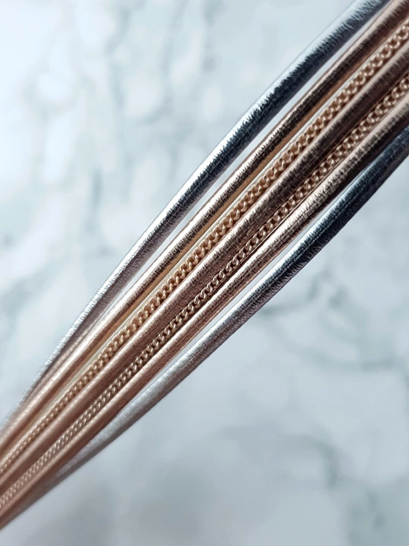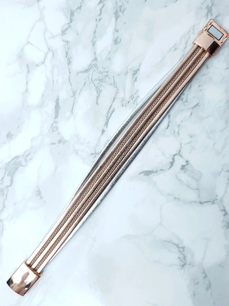 Damska Bransoleta Rzemień Różowe Złoto Łańcuszek Michiko