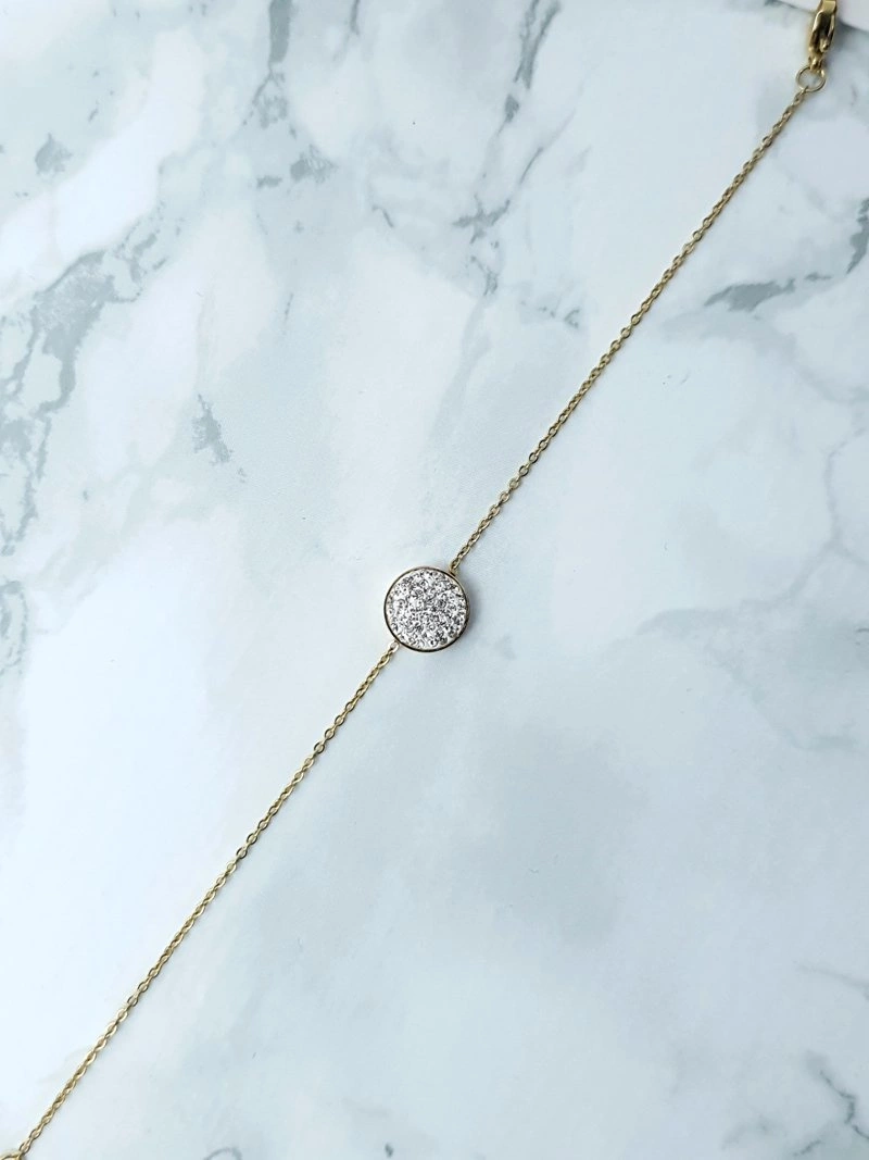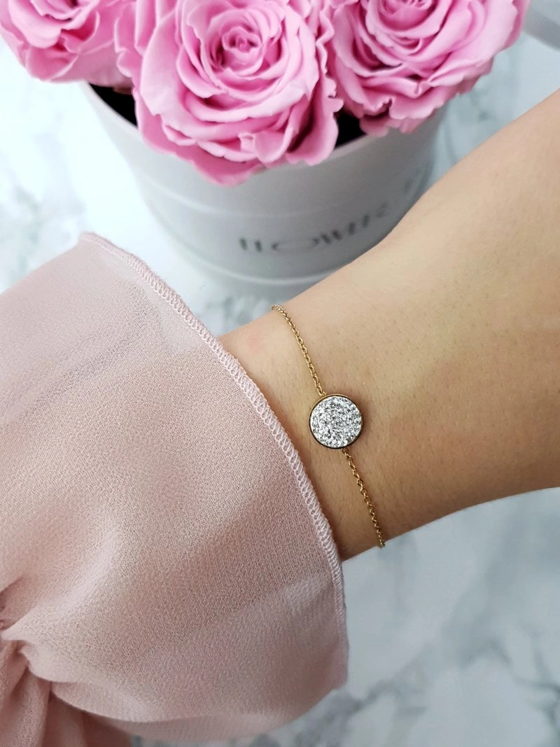 My kobiety kochamy błyskotki. Każda stylizacja potrzebuje dodatków, a nawet te najmniejsze są bardzo ważne. Mowa tu o pięknej biżuterii, która podkreśli to co najlepsze. Wspaniała bransoletka na łańcuszku z małym kółeczkiem wypełnionym cyrkoniami. Kółeczko zostało wykonane z wysokiej jakości tworzywa, natomiast łańcuszek to stal nierdzewna. Modny wzór na który każda z nas zwróci uwagę. Możliwość regulacji długości bransoletki. Sprawdź całą naszą kolekcję biżuterii i wybierz swój ulubiony dodatek.