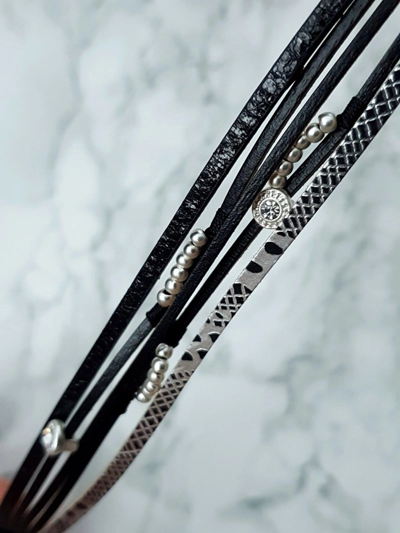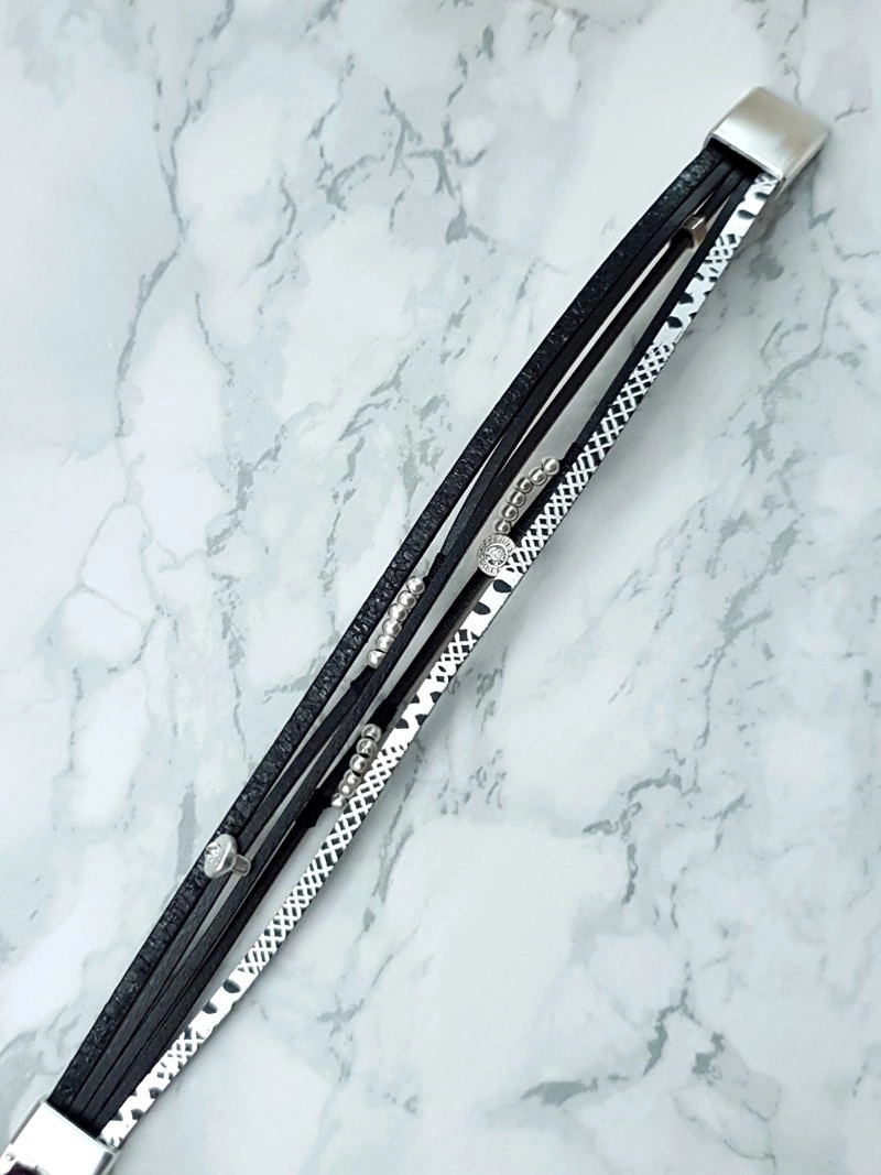 My kobiety kochamy błyskotki. Każda stylizacja potrzebuje dodatków, a nawet te najmniejsze są bardzo ważne. Mowa tu o pięknej biżuterii, która podkreśli to co najlepsze. Wspaniała rzemieniowa bransoletka z zapinaniem na magnes. Model został wykonany z wysokiej jakości skóry ekologicznej. Modny wzór na który każda z nas zwróci uwagę. Sprawdź całą naszą kolekcję biżuterii i wybierz swój ulubiony dodatek.