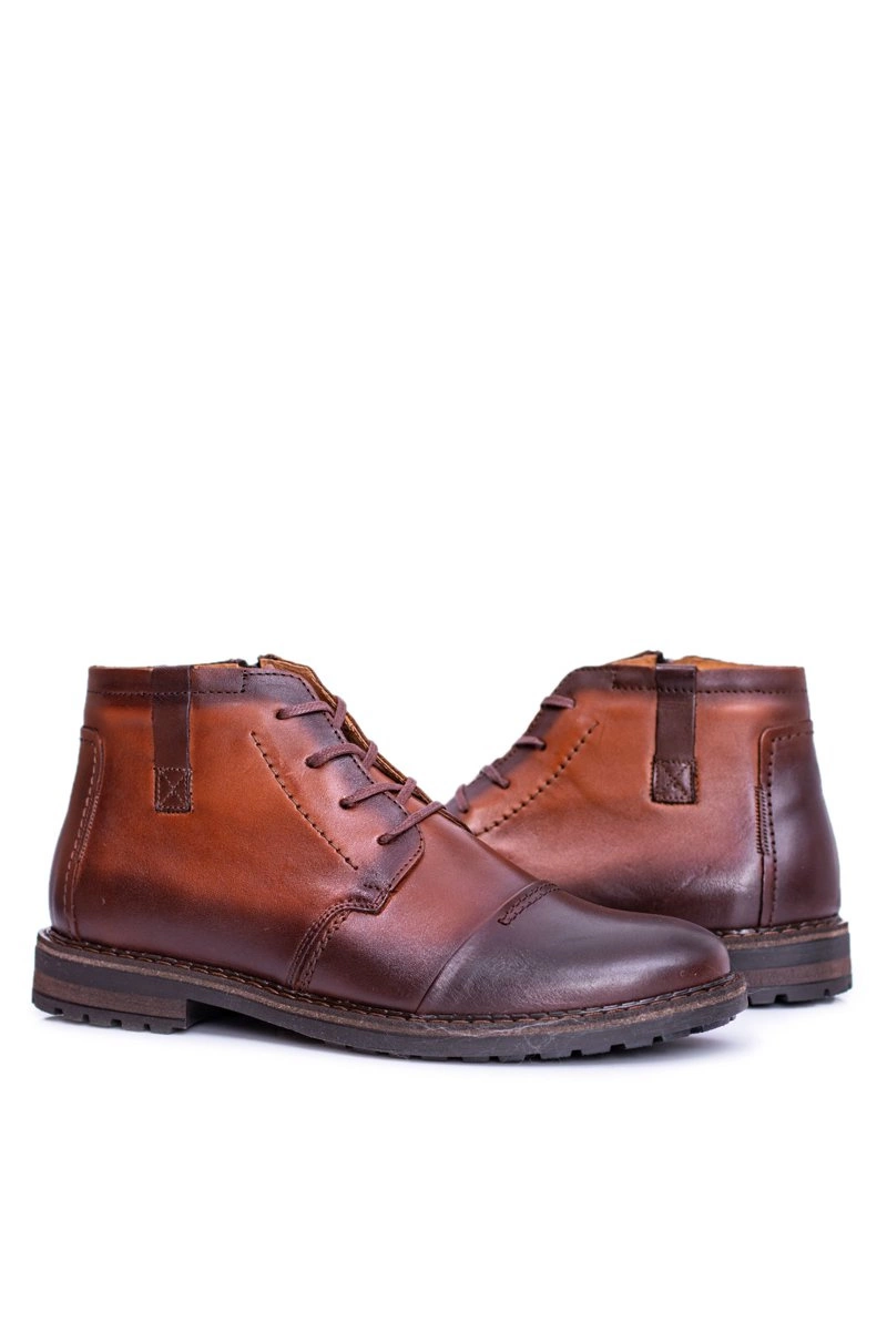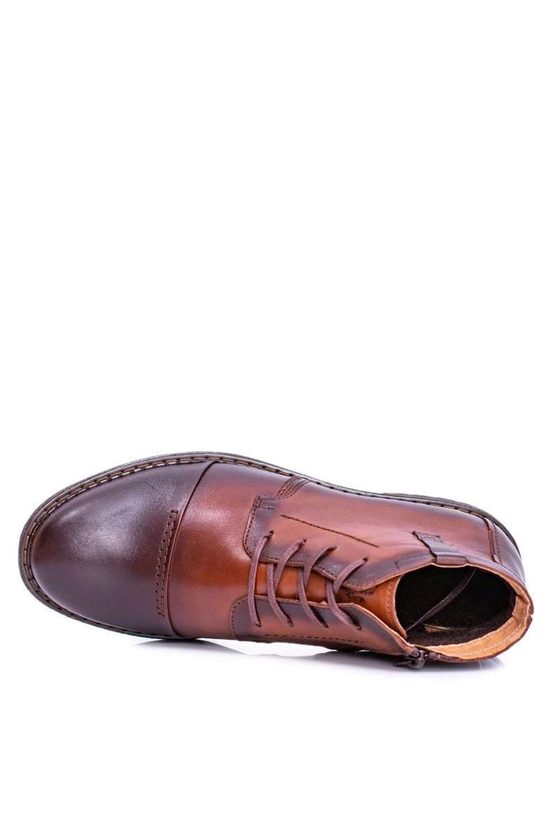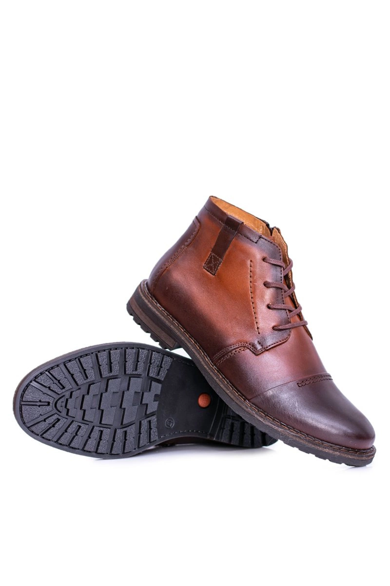 Męskie Botki Polskie Skórzane Trzewiki Koniak Testo