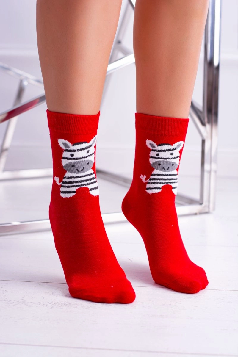 Damskie Skarpetki Świąteczne Czerwone Zebra
