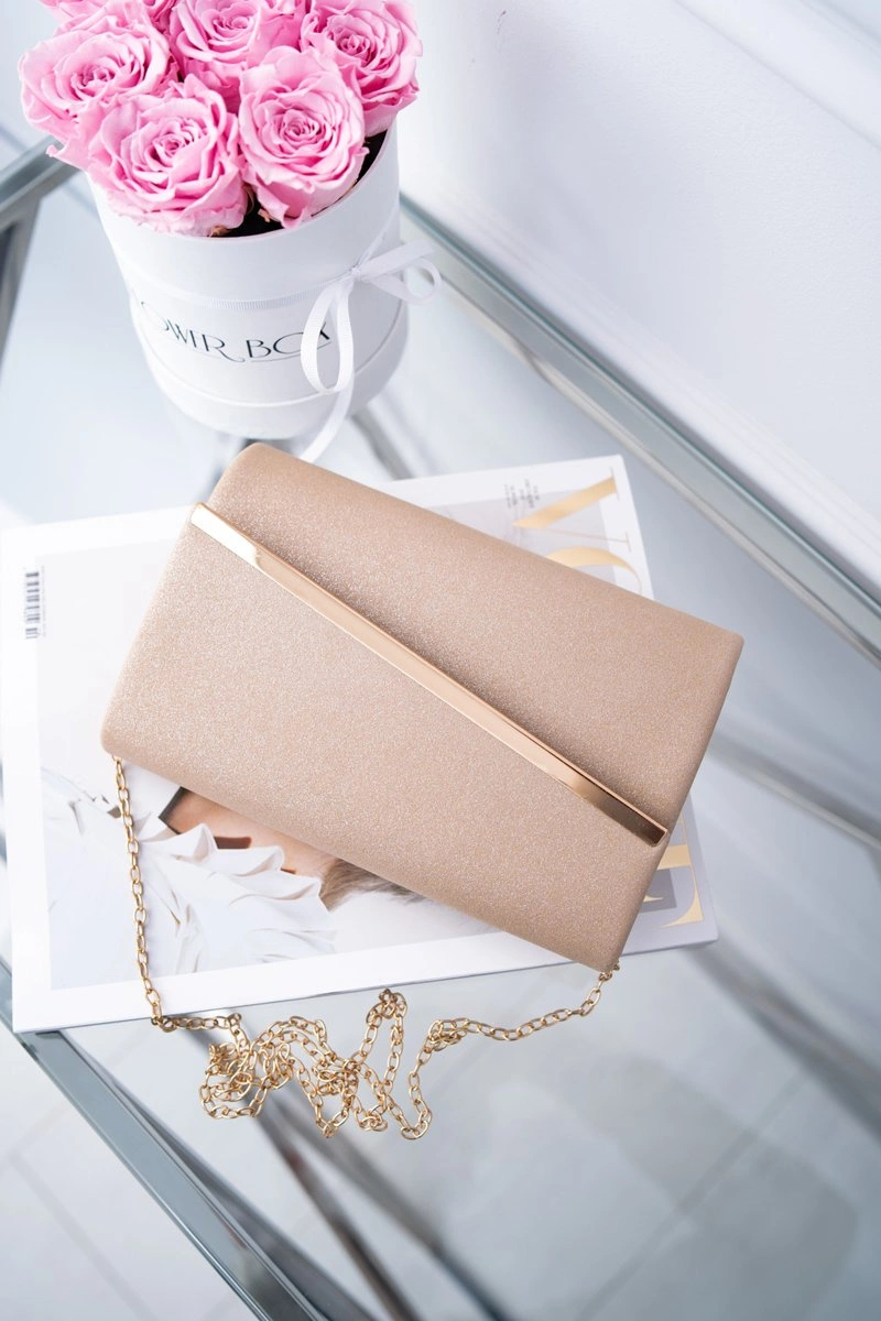 Stylowa kopertówka, która idealnie sprawdzi się podczas wieczornych wyjść oraz imprez okolicznościowych. Model zamykany na zatrzask został wyposażony w praktyczny, odpinany łańcuszek, który zapewni wygodę użytkowania.