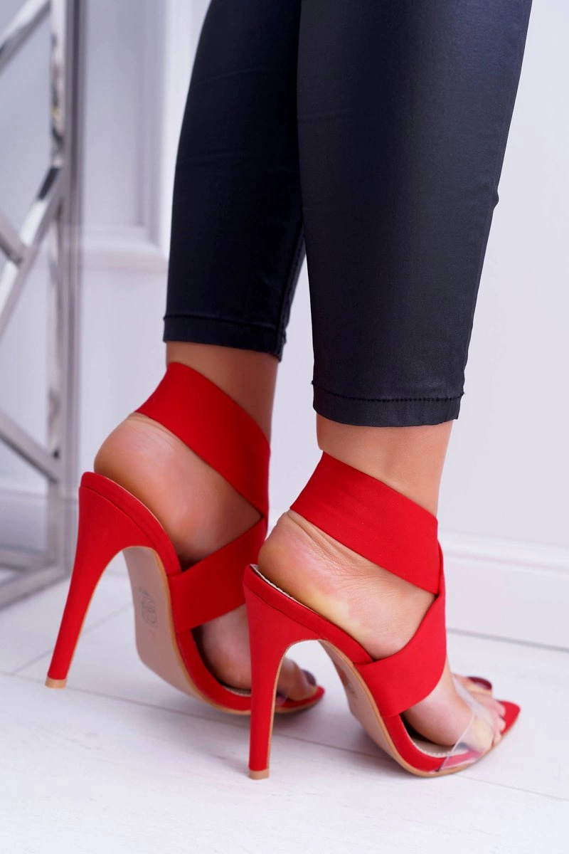 Sandały Damskie Na Obcasie Szeroki Pasek Czerwone Lights