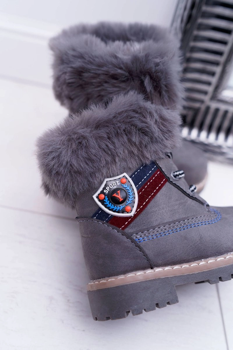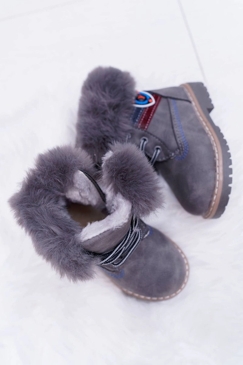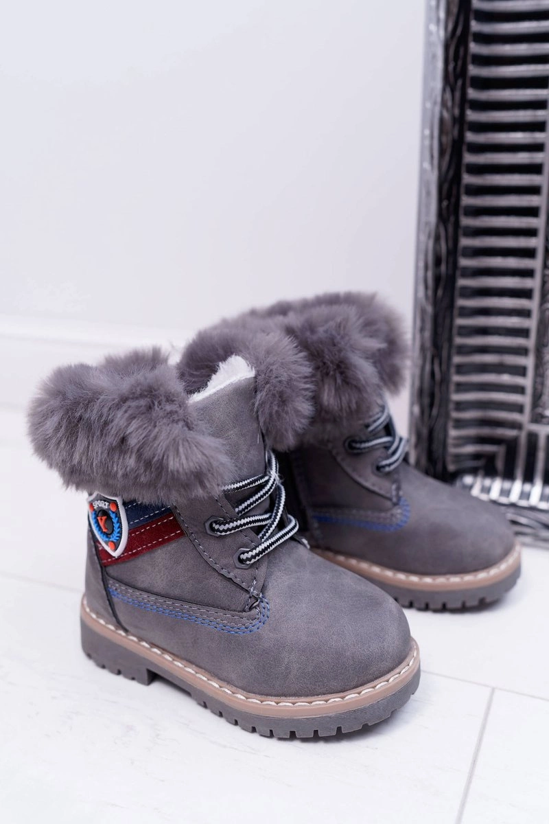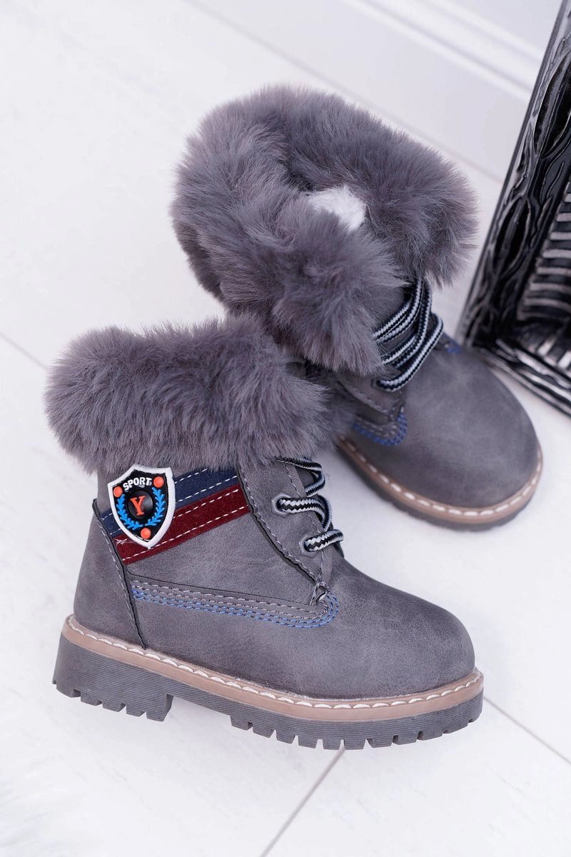 Dziecięce Chłopięce Botki Ocieplane Futerkiem Trapery Szare Cobi