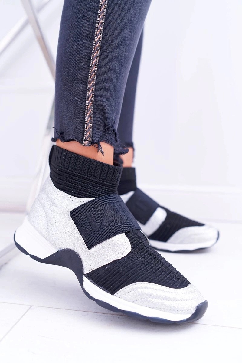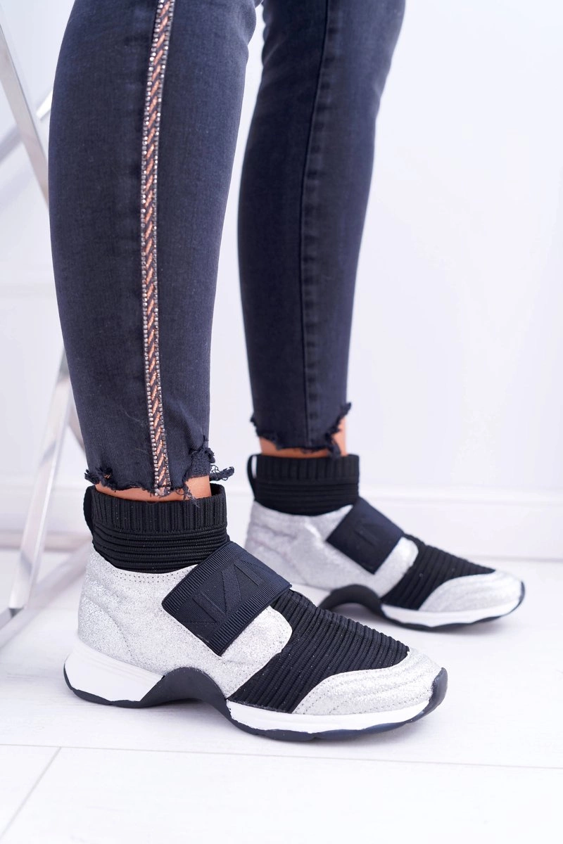 Obuwie Sportowe Damskie Lu Boo Ze Skarpetą Srebrny Brokat Phantom