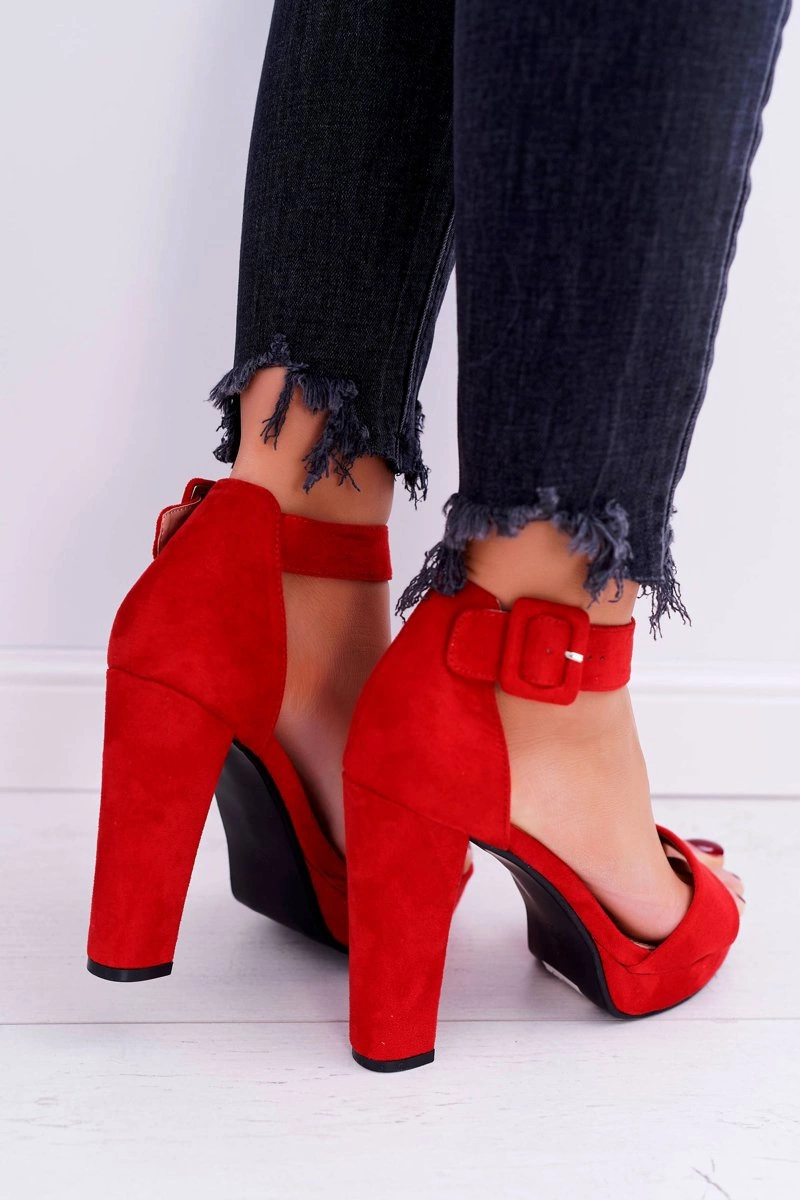 Sandały Damskie Na Obcasie Słupku Zamsz Czerwone ShakeUp
