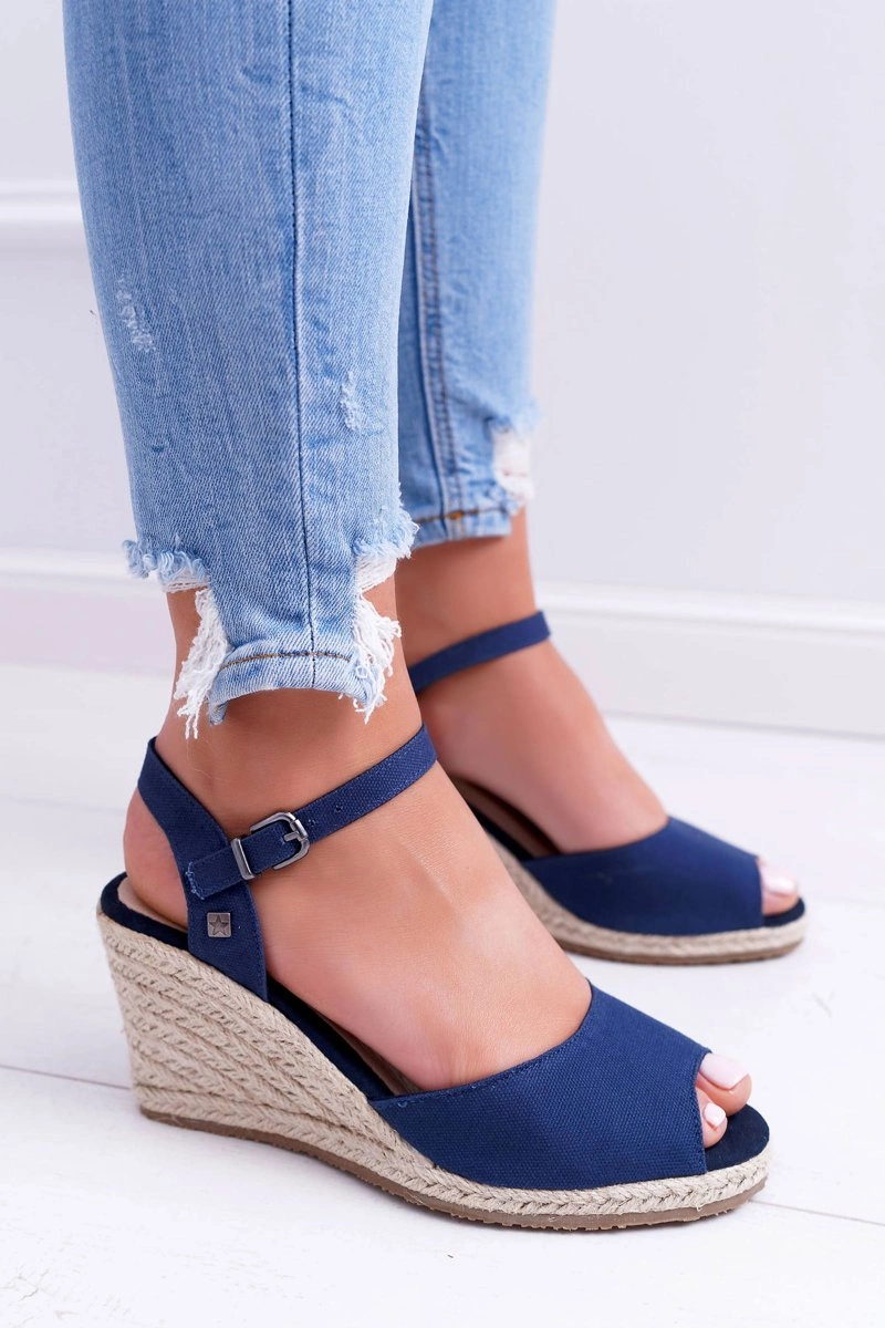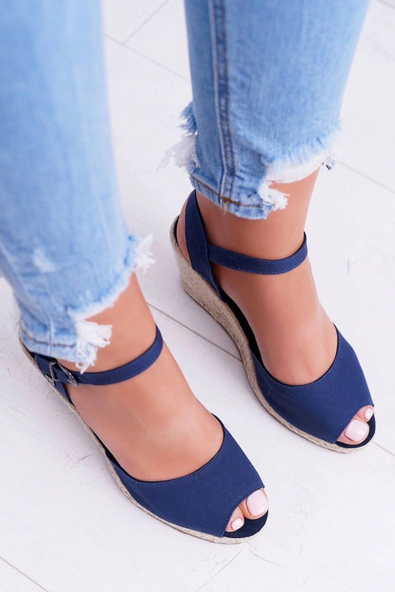 Sandały Damskie Na Plecionej Koturnie Big Star Granatowe DD274A212