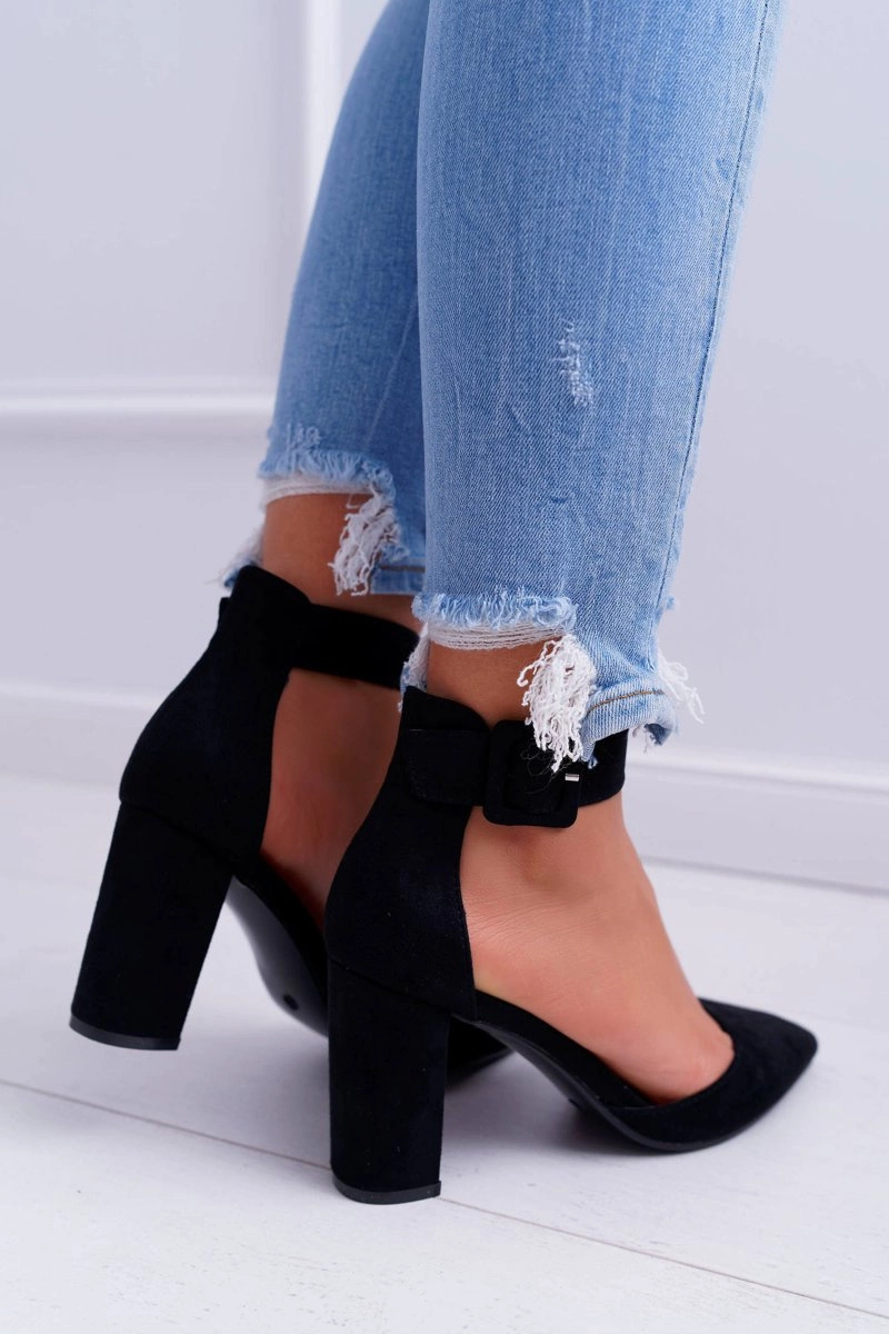Czółenka Damskie Na Słupku W Szpic Czarne Domine