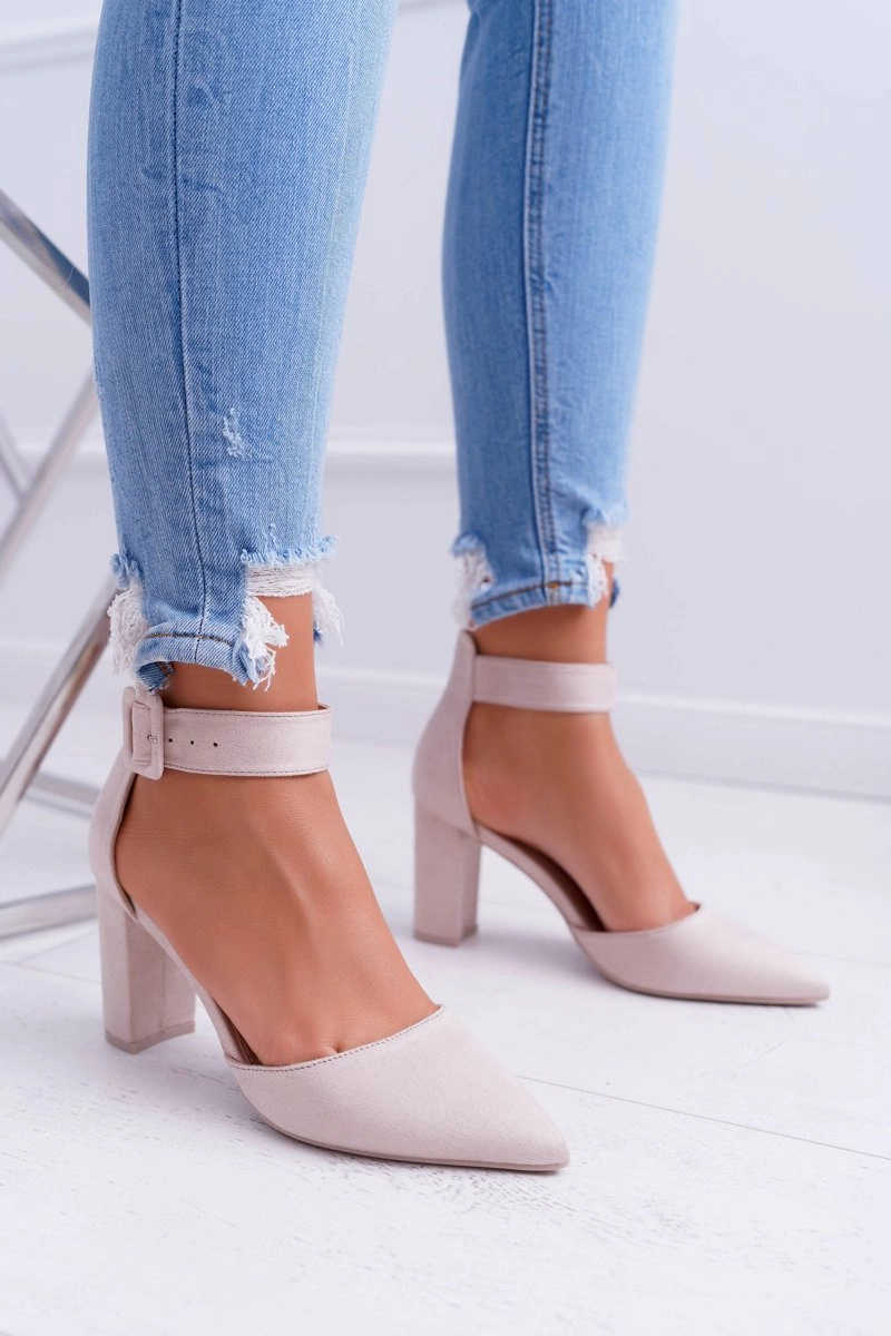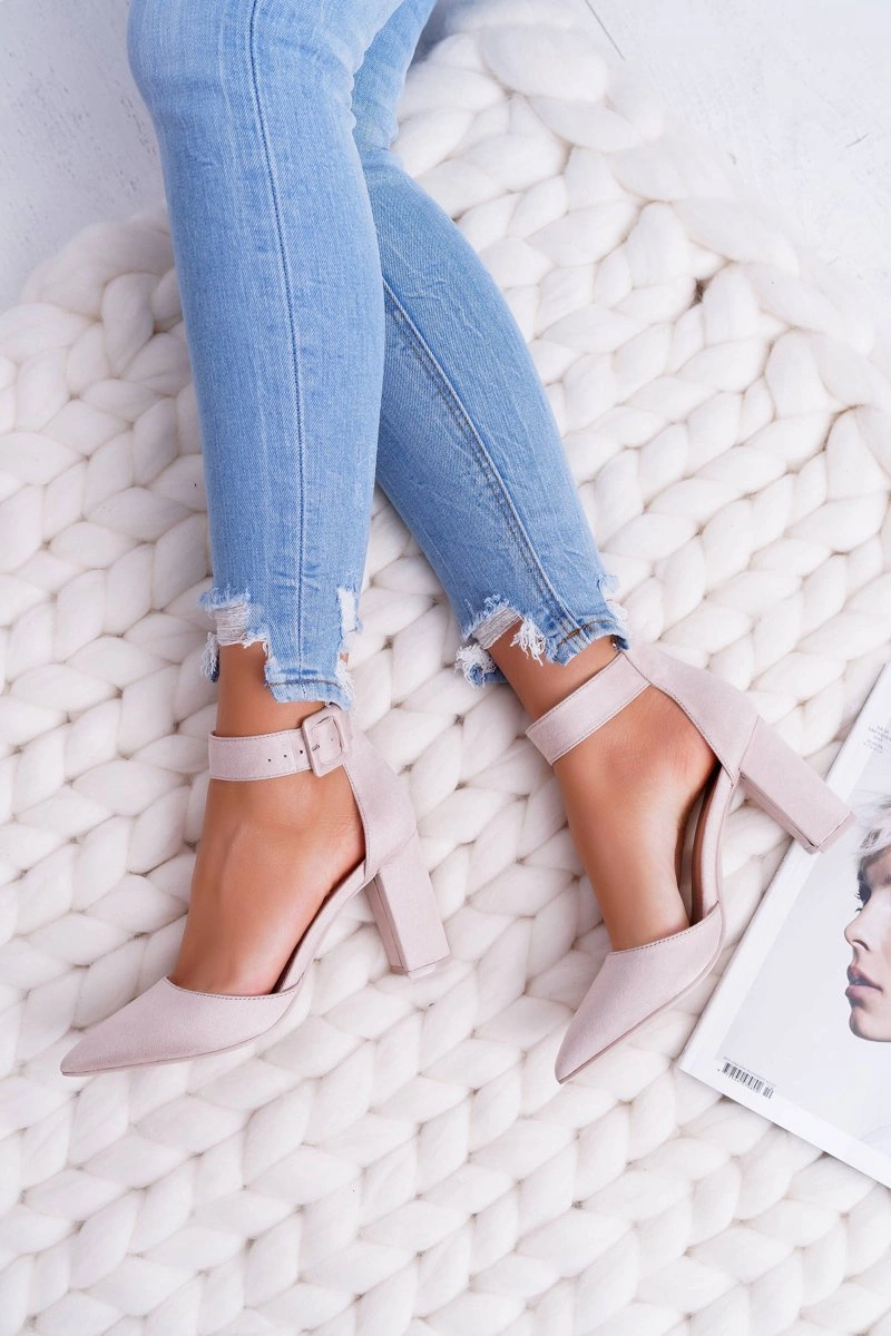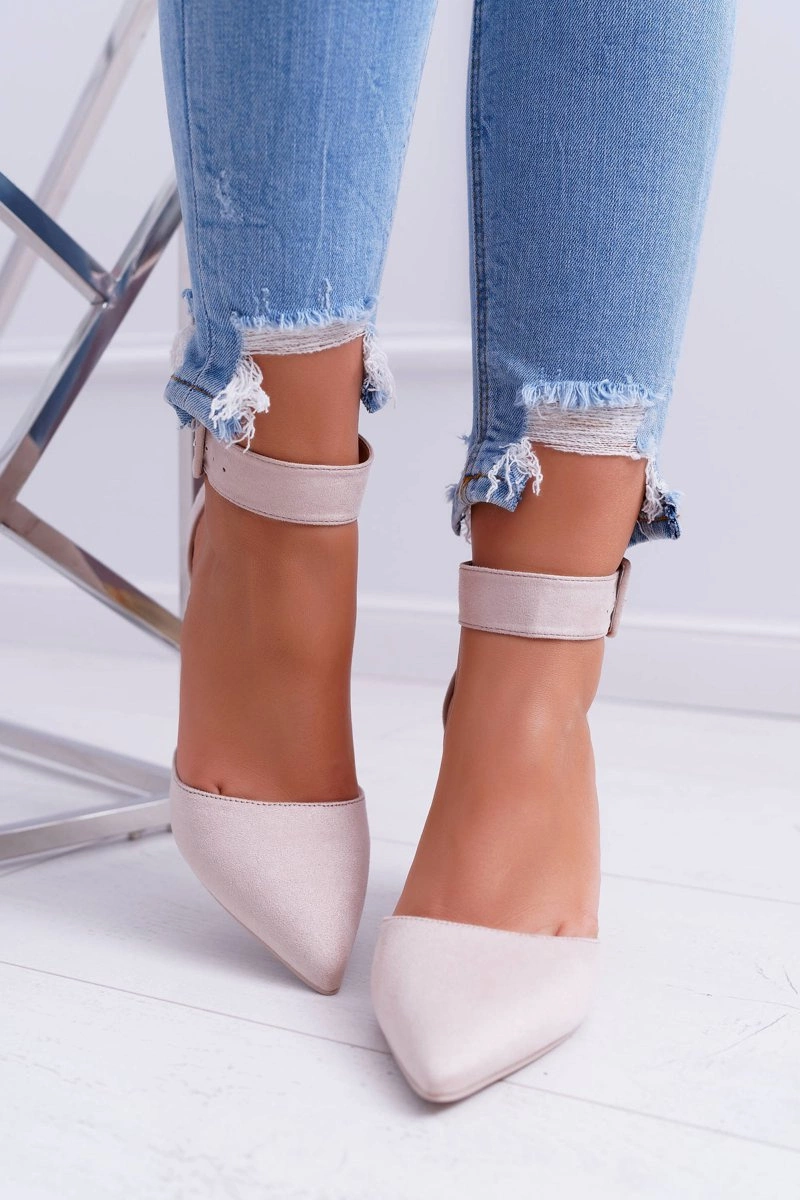 Czółenka Damskie Na Słupku W Szpic Beżowe Domine