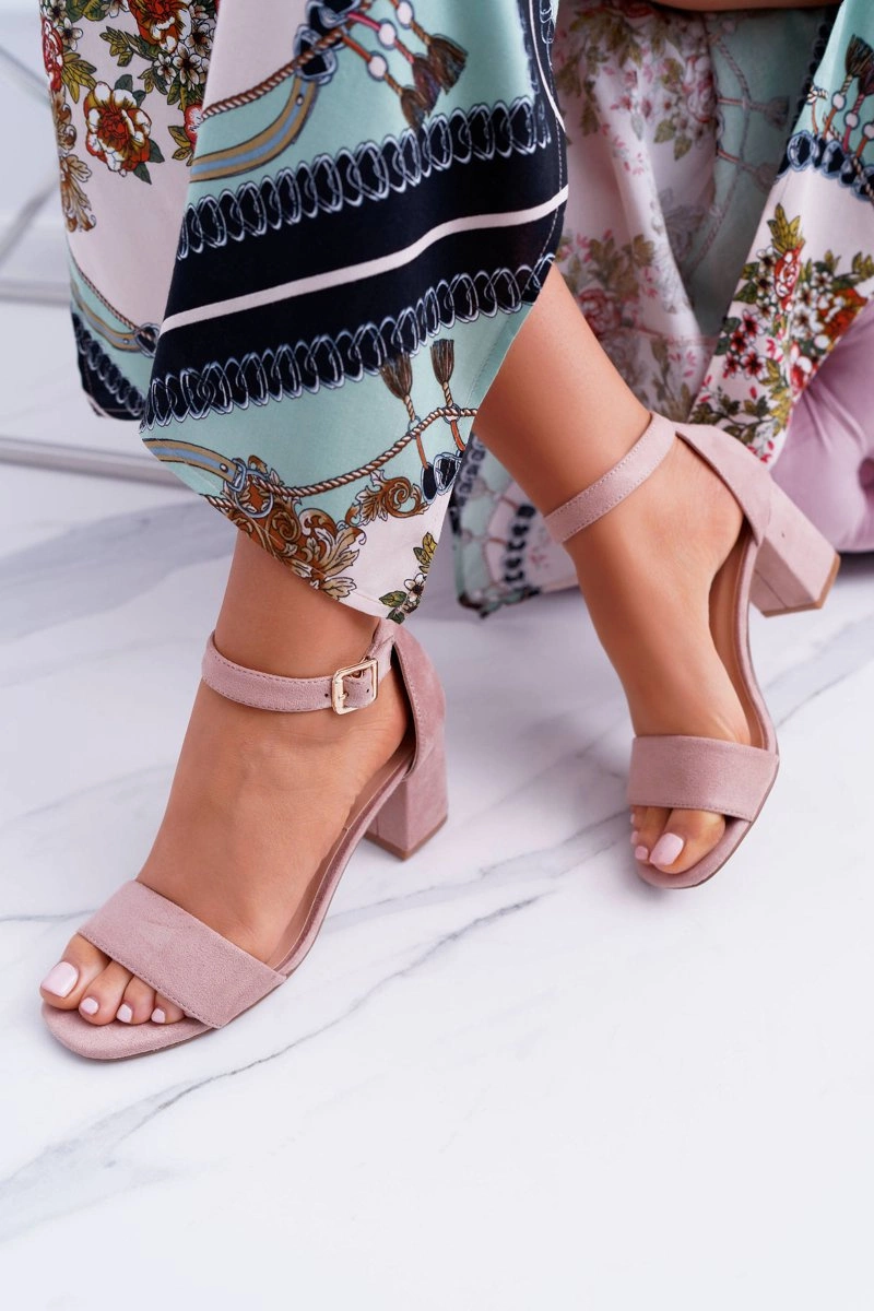 Różowe Damskie Sandały Na Słupku Zamsz NewGenua
