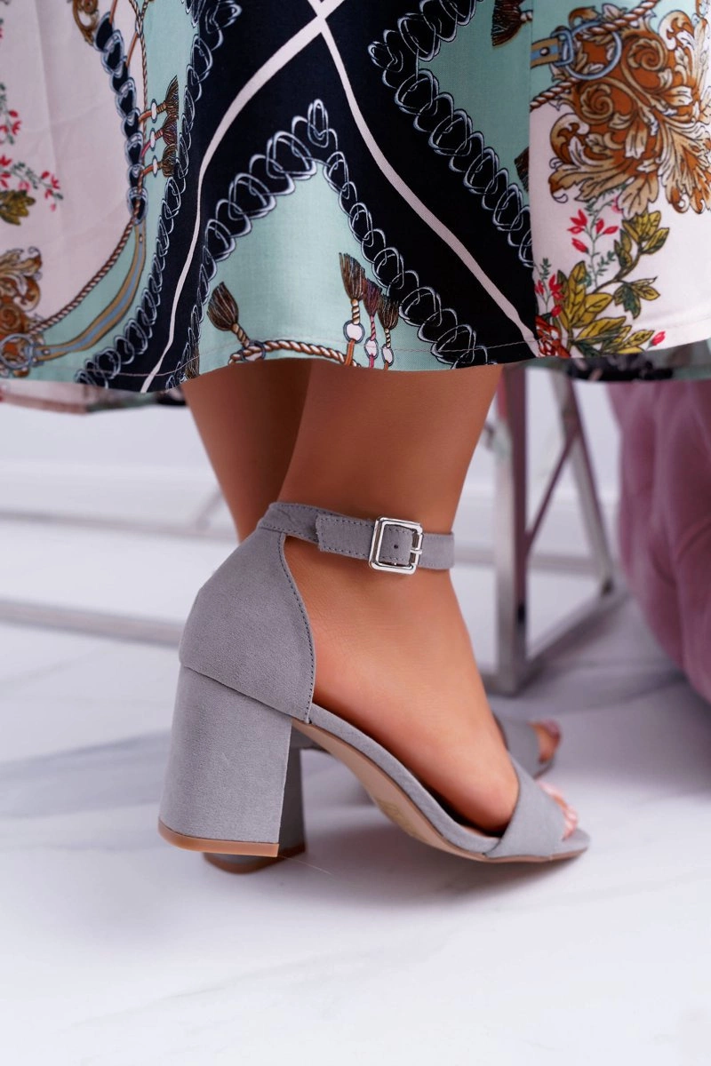 Szare Damskie Sandały Na Słupku Zamsz NewGenua