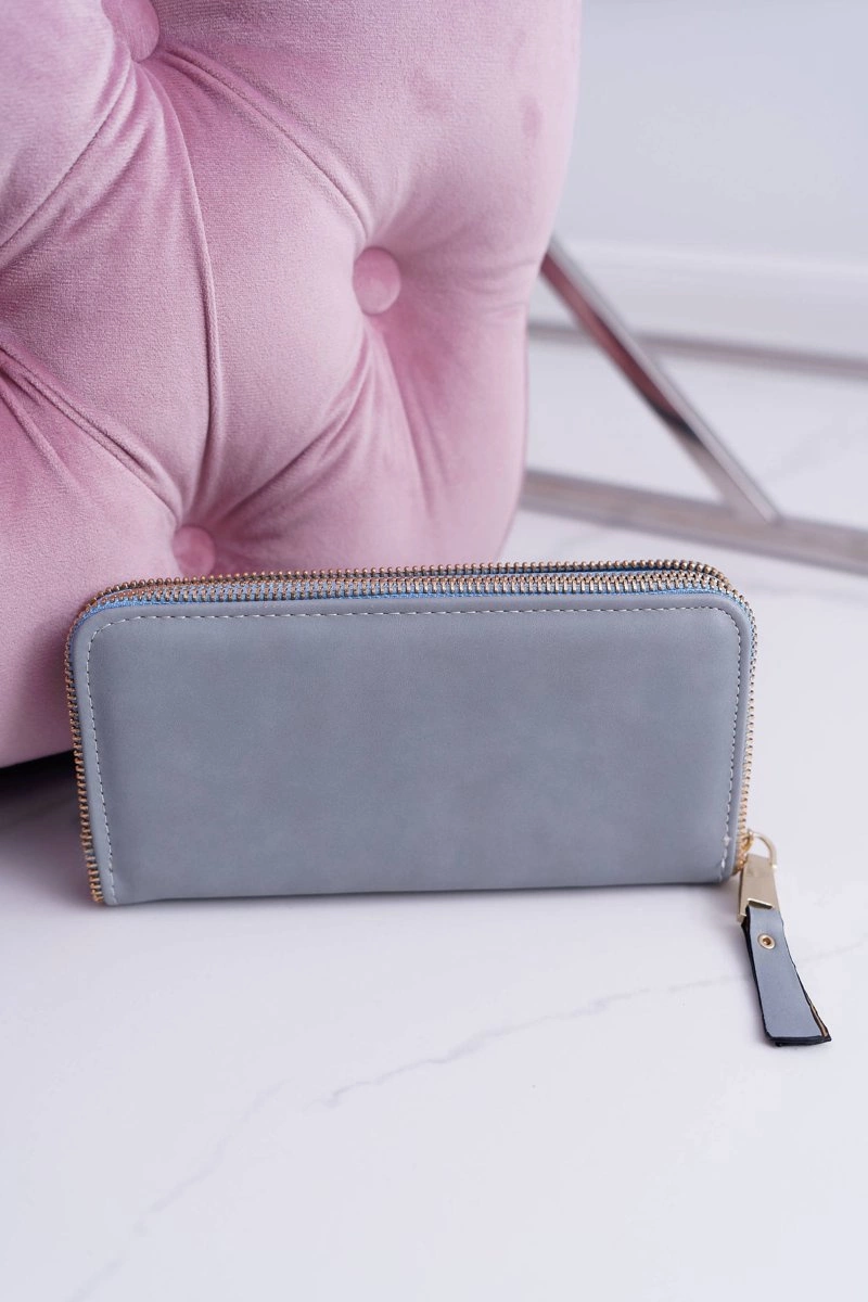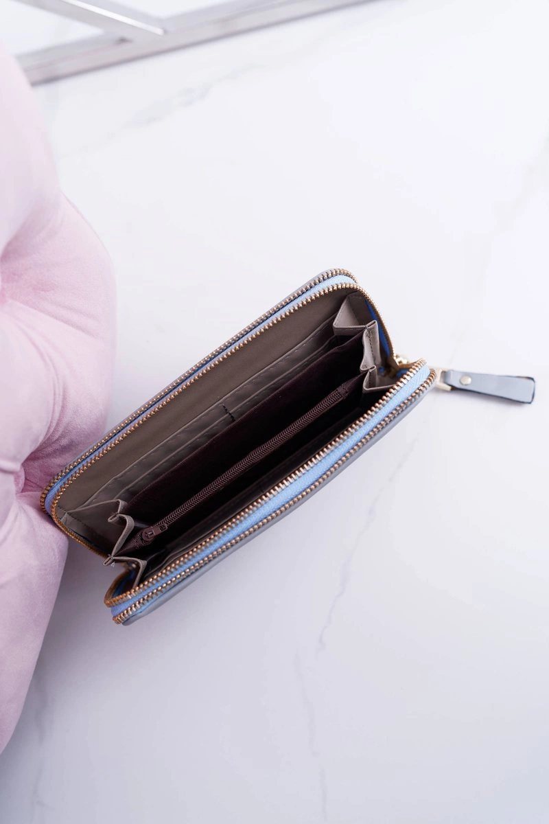 Portfel Damski Duży Niebieski Złoty Ozdobny Suwak