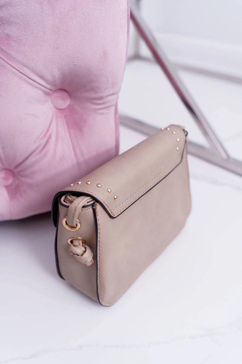 Torebka Damska Mała Kuferek Złote Nity Beżowa
