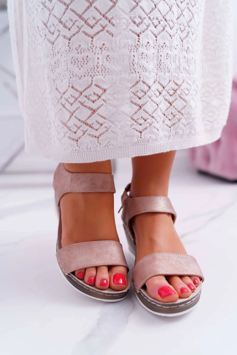 Damskie Sandały na Koturnie Różowe Złoto Gerdro