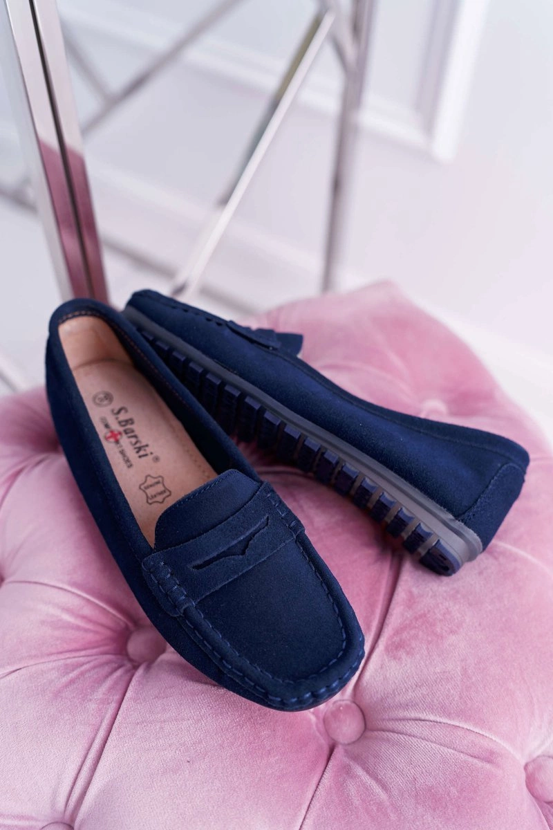 Mokasyny Damskie Skóra Zamszowa Granatowe Tenzion