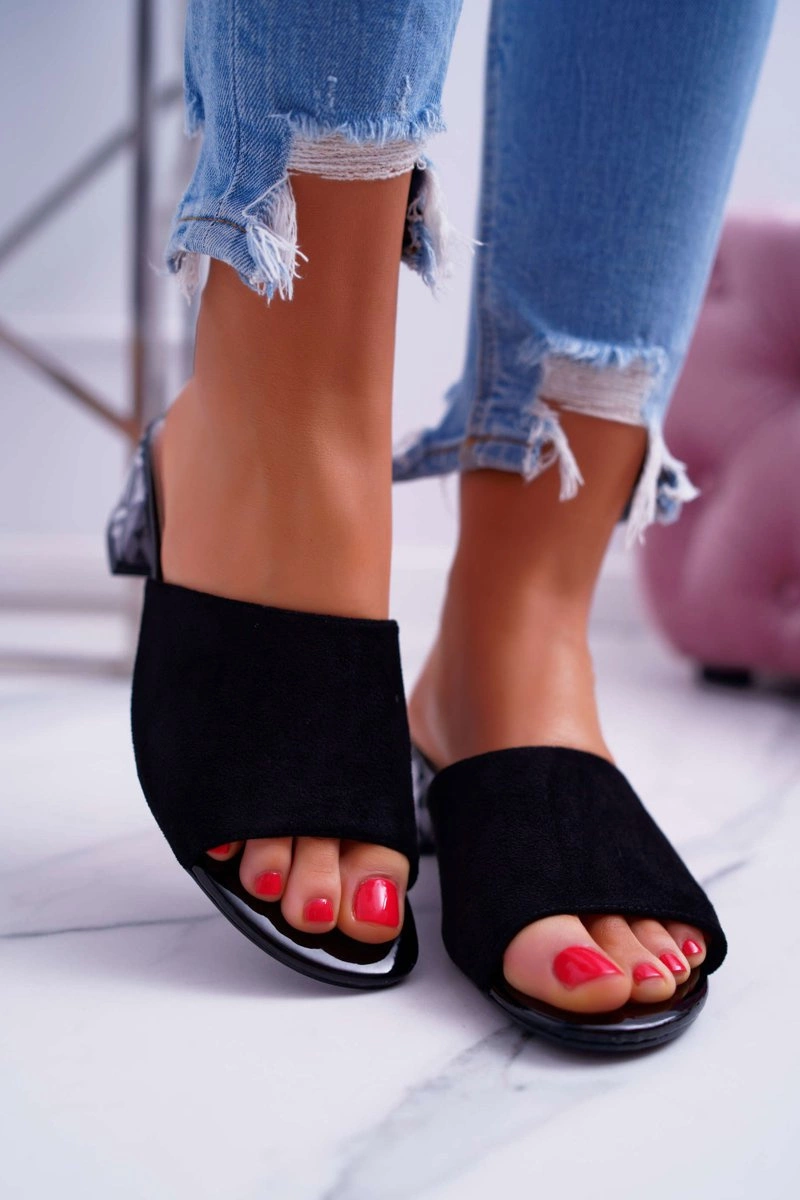 Klapki Damskie Eleganckie Na Klocku Zamszowe Czarne Valencia