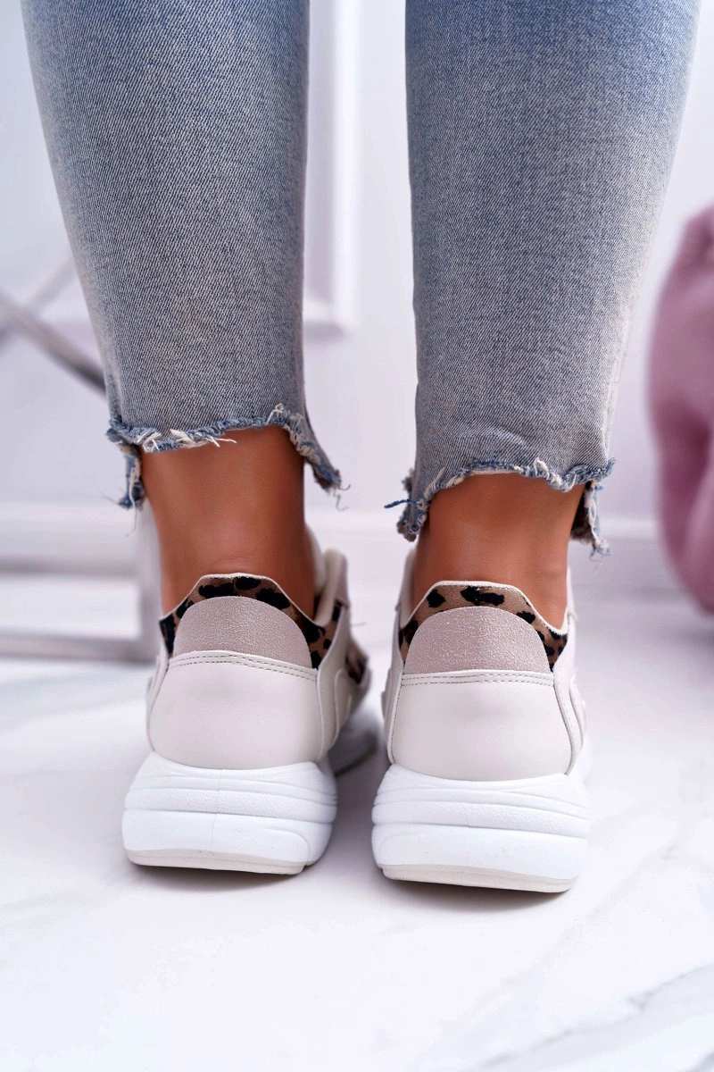 Sportowe Damskie Buty Beżowe Leopard Mezeno
