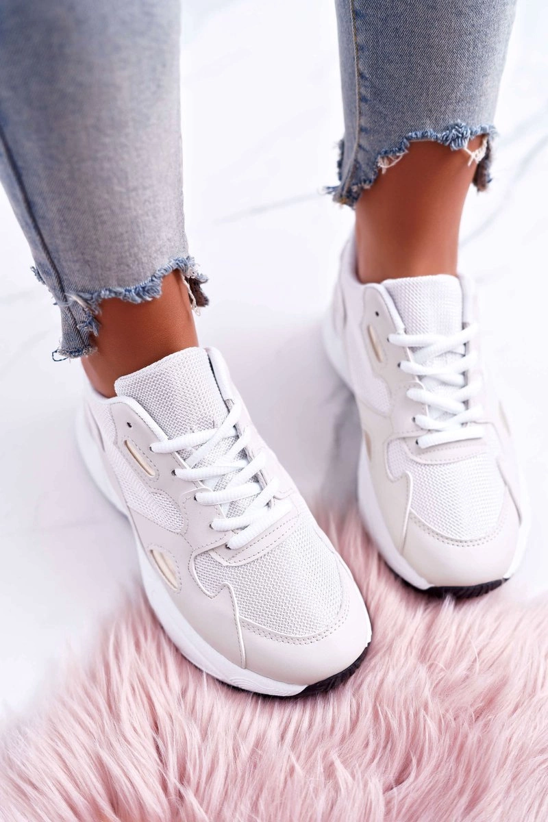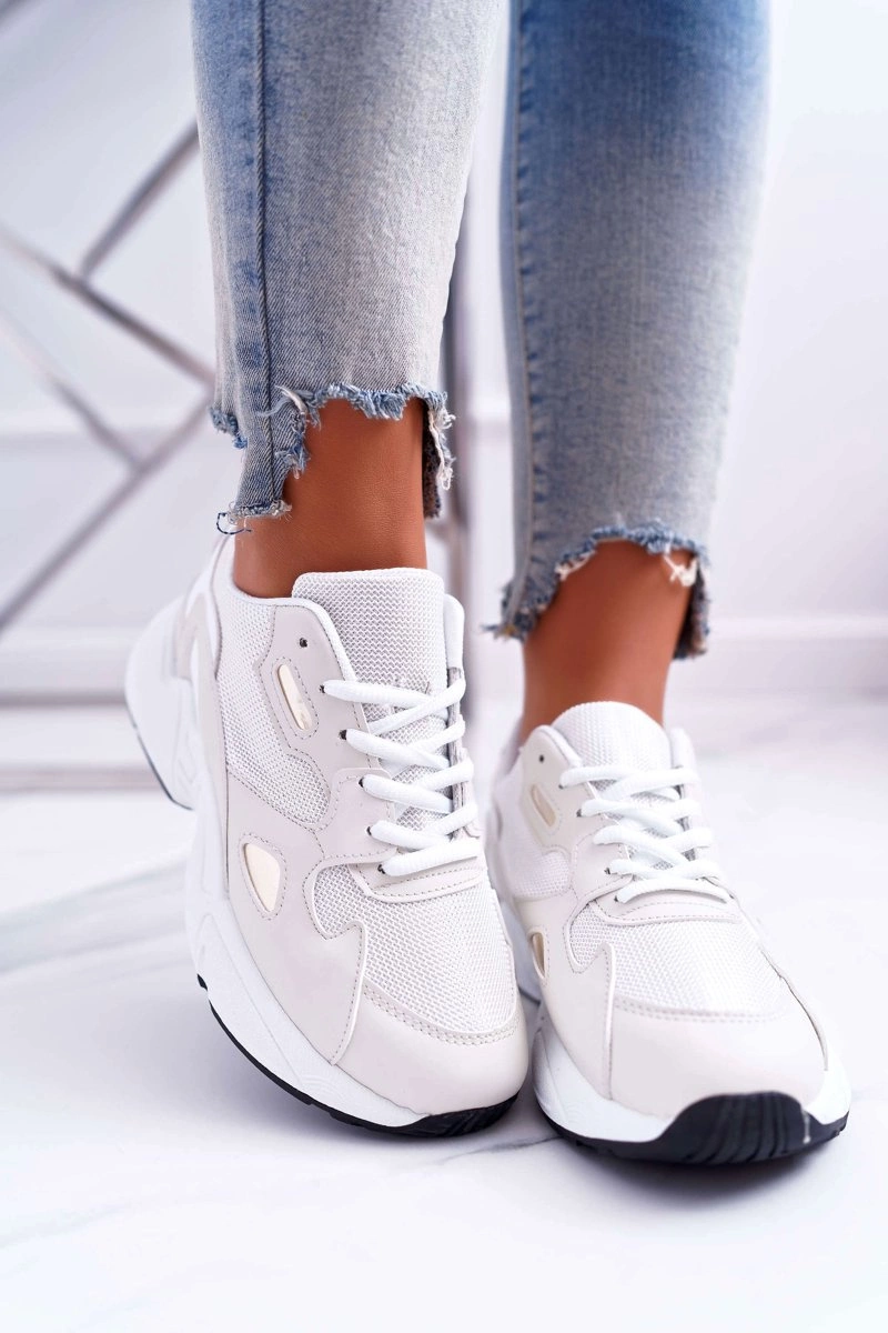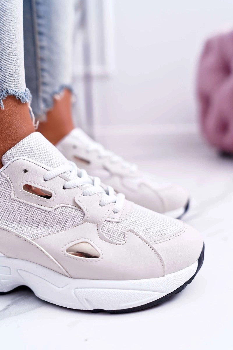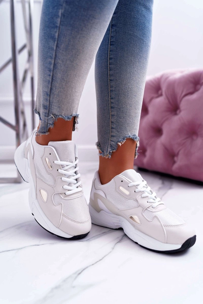 Sportowe Damskie Buty Białe Beżowe Szantal