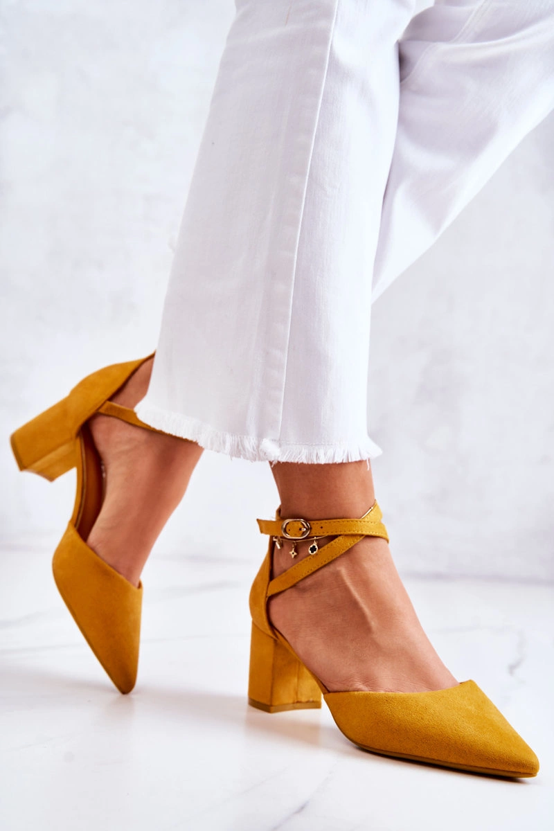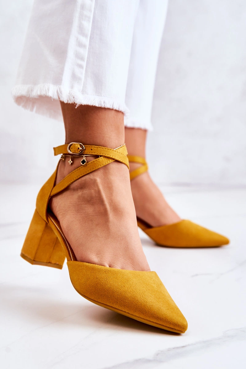Czółenka Damskie Na Słupku W Szpic Żółte Cosmo