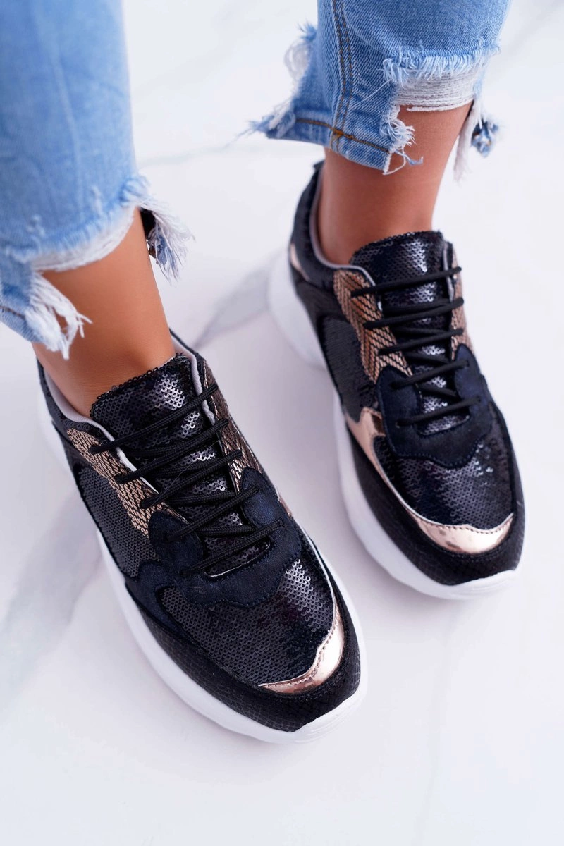 Uwielbiasz modne i ekstrawaganckie obuwie ale nie byłaś pewna czy są dla Ciebie? Ten sportowy krój na grubej podeszwie w połączeniu z modnymi czarnymi cekinami to totalny must have tego sezonu! Te buty będą pasować do każdej stylizacji, w nich będziesz wyglądać wspaniale w każdej sytuacji! Przy wyborze rozmiaru prosimy kierować się tabelą rozmiarów.