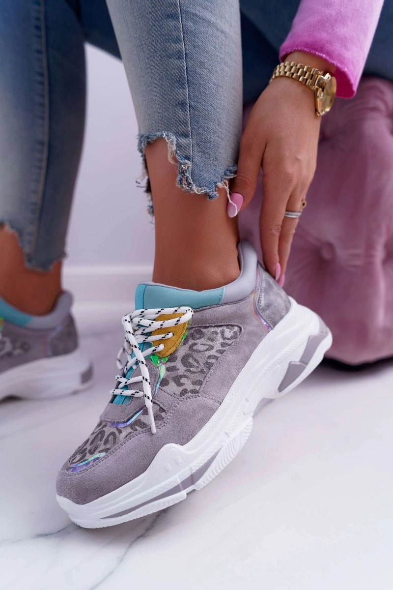Sportowe Damskie Buty Wysoka Podeszwa Szare Cabana