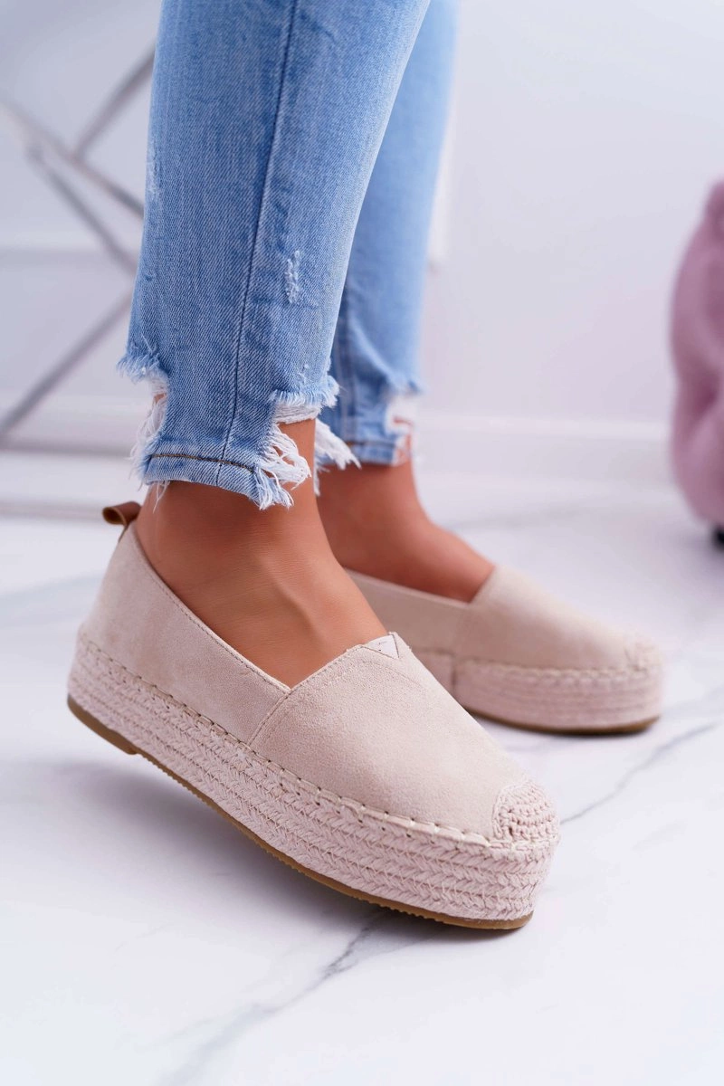 Espadryle Damskie Zamszowe Na Platformie Beżowe Varles