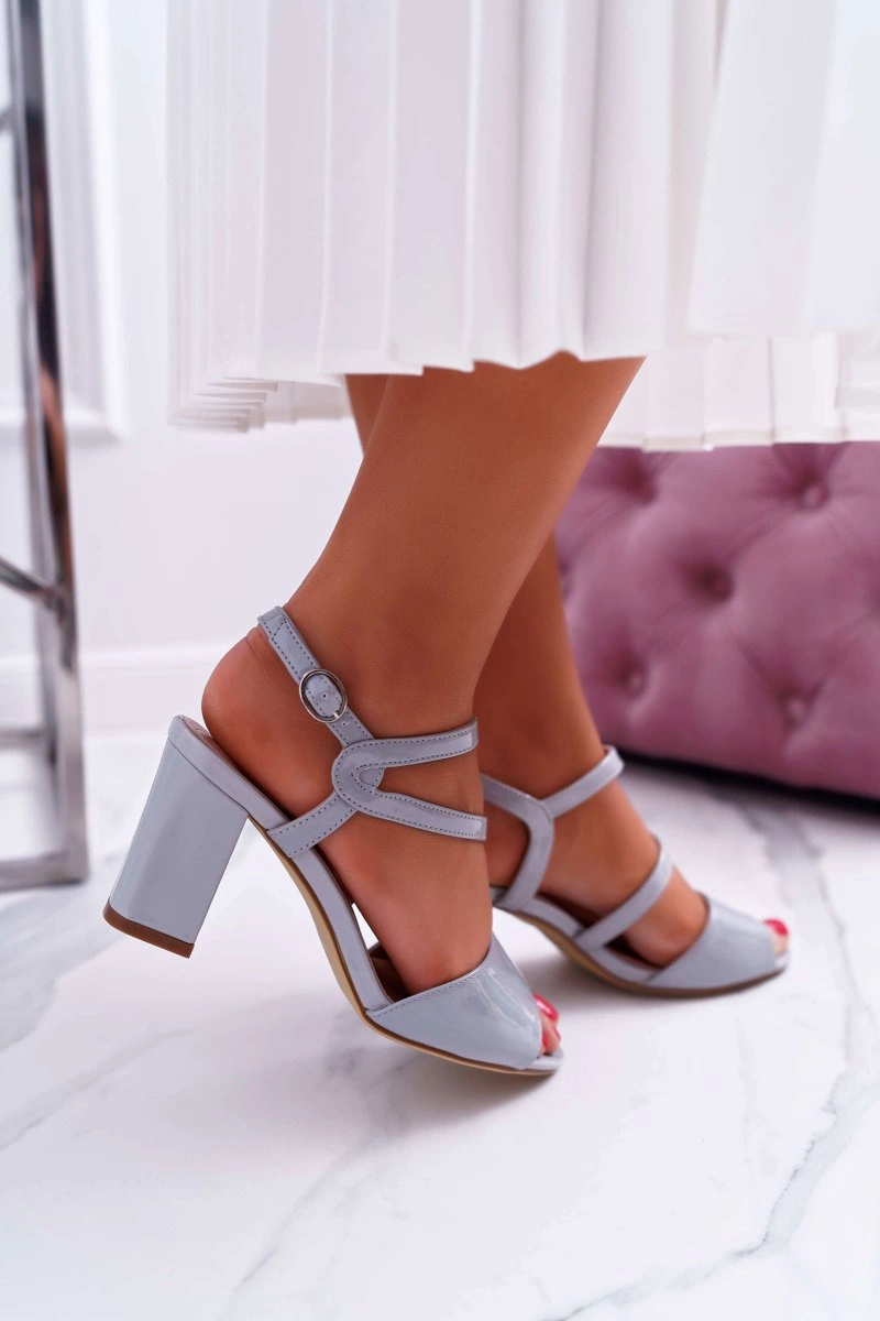 Sandały Damskie Na Słupku Sergio Leone SK844 Lakierowane Szare Tres