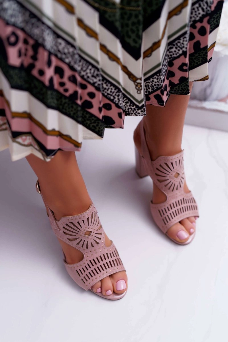 Sandały to nie tylko buty, które muszą kojarzyć się z luźnym stylem dnia codziennego. Model SK852 świetnie sprawdzi się również do bardziej formalnych stylizacji wieczorowych. Modny lakierowany słupek oraz ażurowa cholewka wykonana z eko-zamszu zdobiona złotymi dżetami. Klasyczne zapinanie na sprzączkę wokół kostki. Komfort zapewniony przez skórzaną wkładkę. Przy wyborze rozmiaru prosimy sugerować się tabelą rozmiarów.