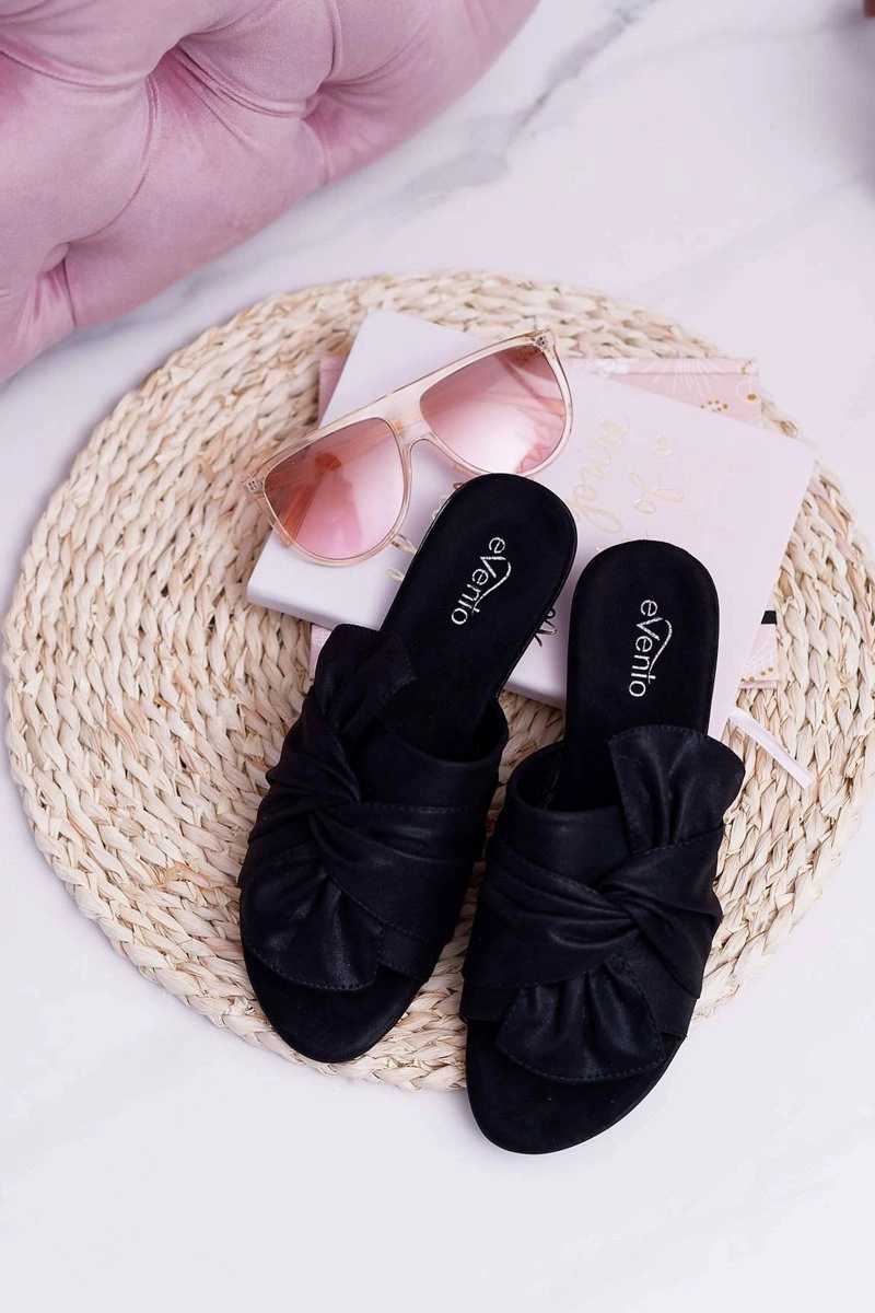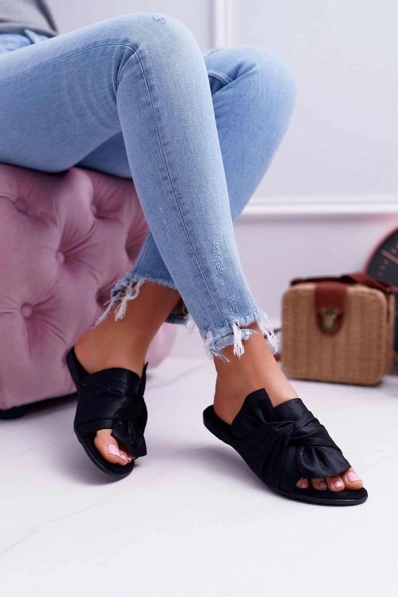 Połyskujące Klapki Z Wiązaniem Czarne Emilia