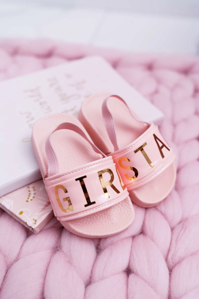 Dziecięce Klapki Dziewczęce Złoty Napis Girl Star Różowe Bambi