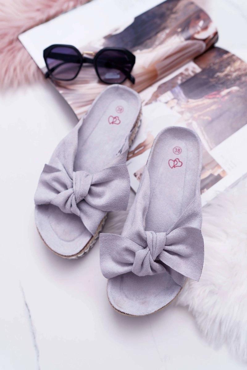 Klapki Damskie Z Kokardami Gruba Podeszwa Szare Milady