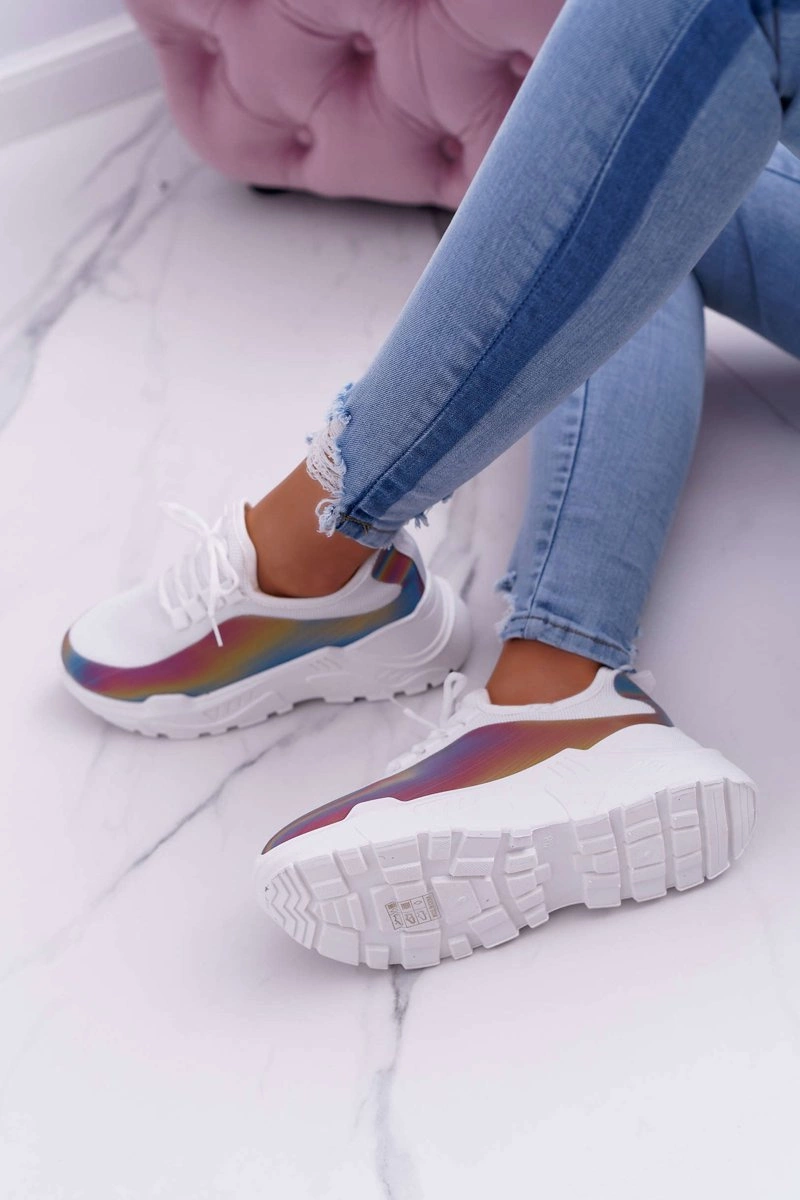Sportowe Damskie Buty Gruba Podeszwa Holograficzne Białe Party Up