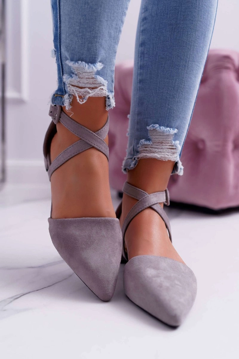 Damskie Baleriny Szare Zamszowe W Szpic Medena