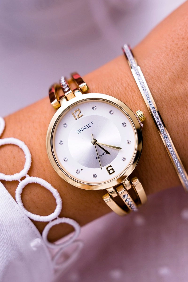 Damski Zegarek Ernest Cyrkonie Złoty Alendi
